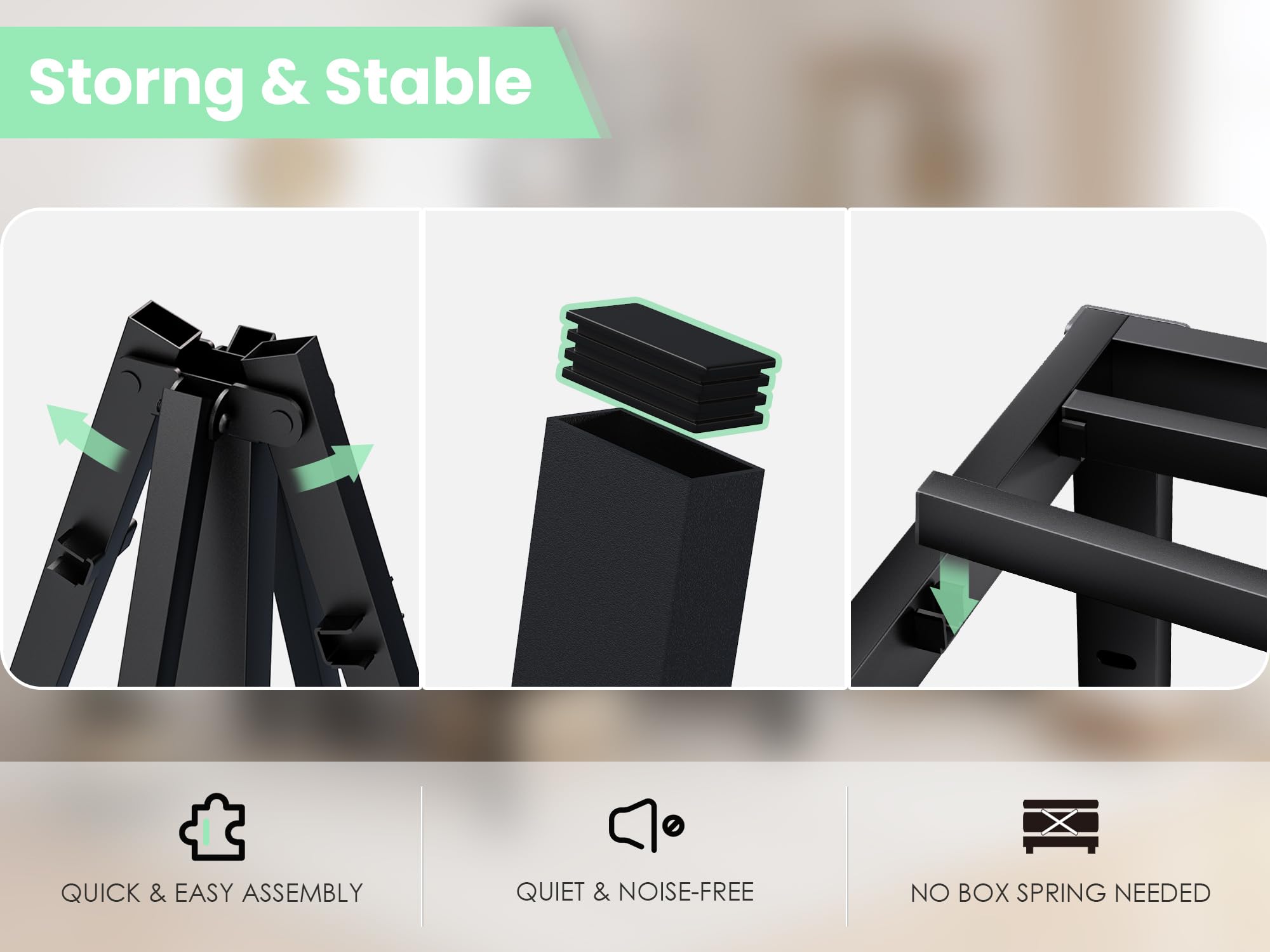 - Our twin size bed frames is made of ultra-stable steel with a stable structural design, seamlessly welded, no squeaking, no shaking and can support 1,500 pounds of static pressure without deformation.