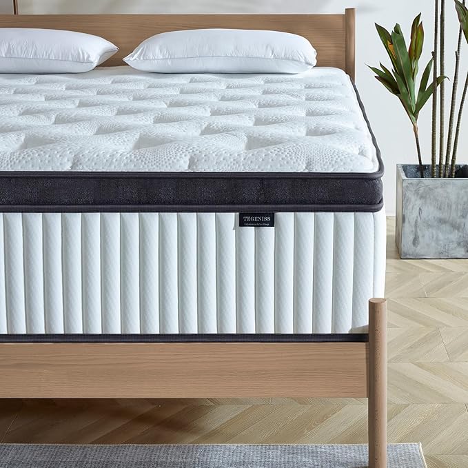 - 1. Enjoy Healthy Sleep - Tegeniss Queen size hybrid mattress combines premium memory foam with individually pocketed coils to provide superior comfort and targeted support. Your weight is evenly distributed, ensuring a restful night's sleep. Say goodbye to aches and pains and wake up feeling refreshed each morning