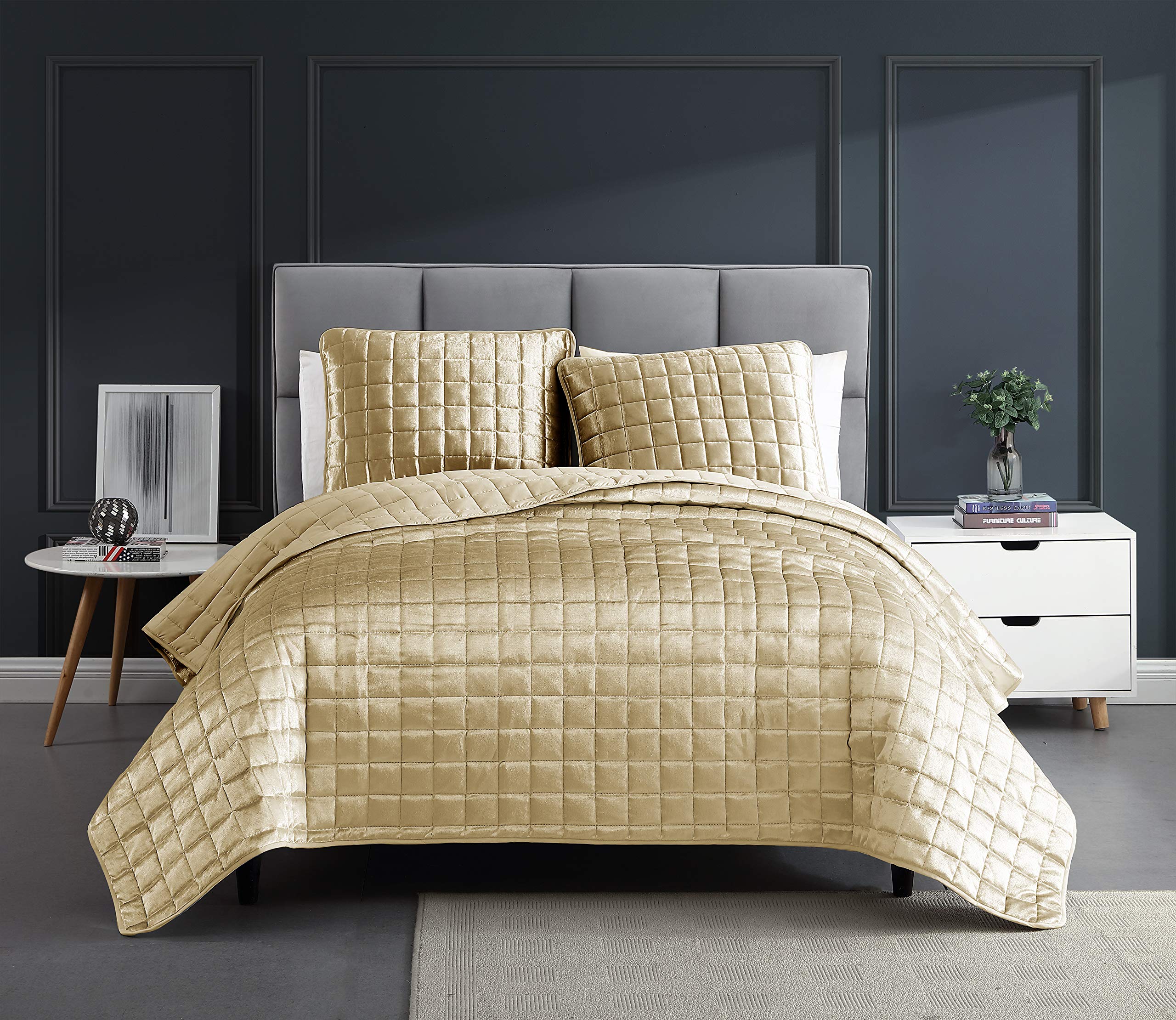 Lyndon Quilt Set, Queen, Gold, 3-Piece Set
