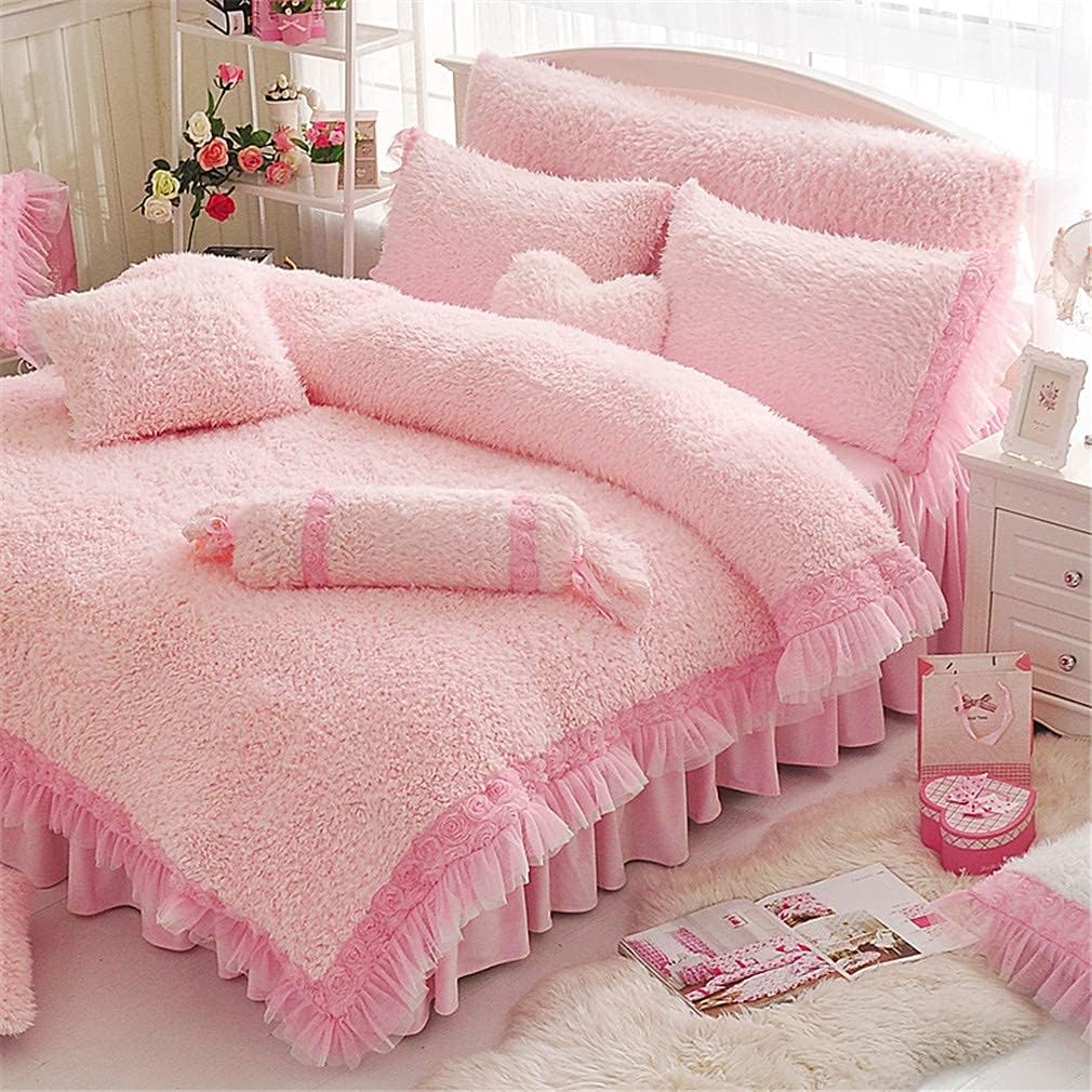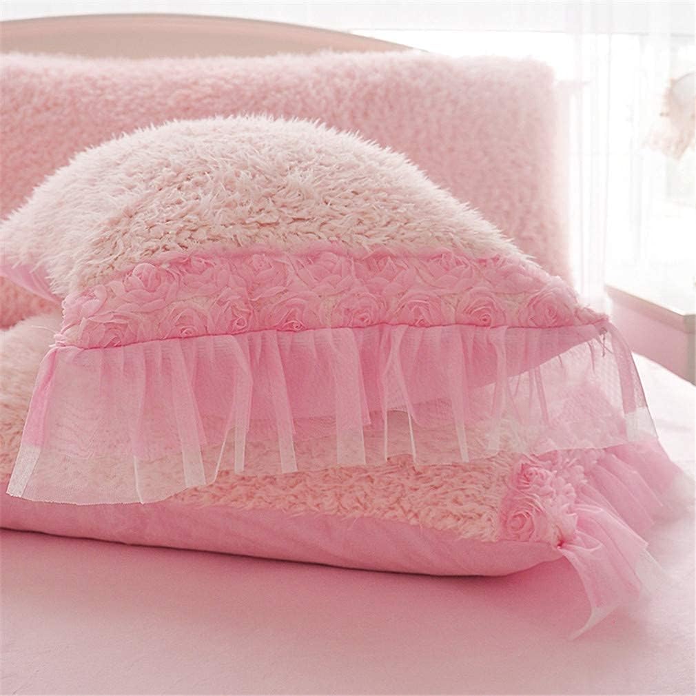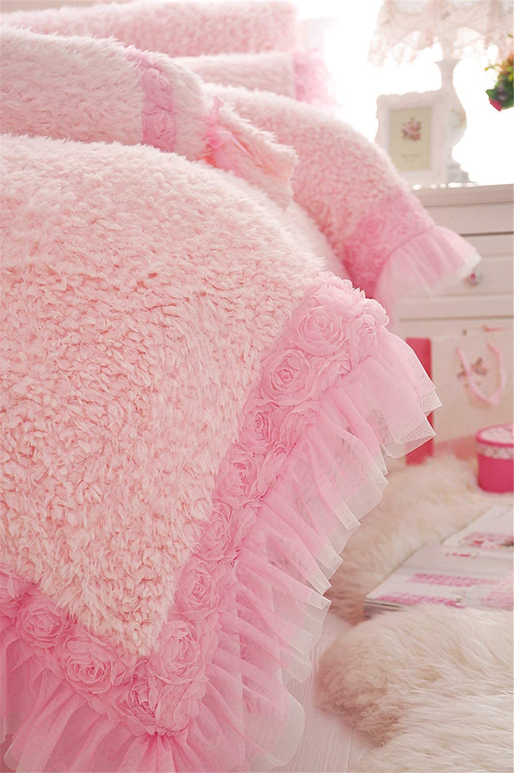 Fleece Duvet Quilt Cover Super Soft Thermal Cozy Bedding Set with Rose Lace
