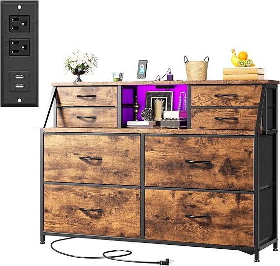 Dresser for Bedroom with Power Strip & LED, 8 Drawers Dresser
