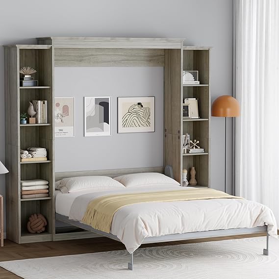Queen Murphy Bed Cabinet with 5-Tier Adjustable Storage Shelves