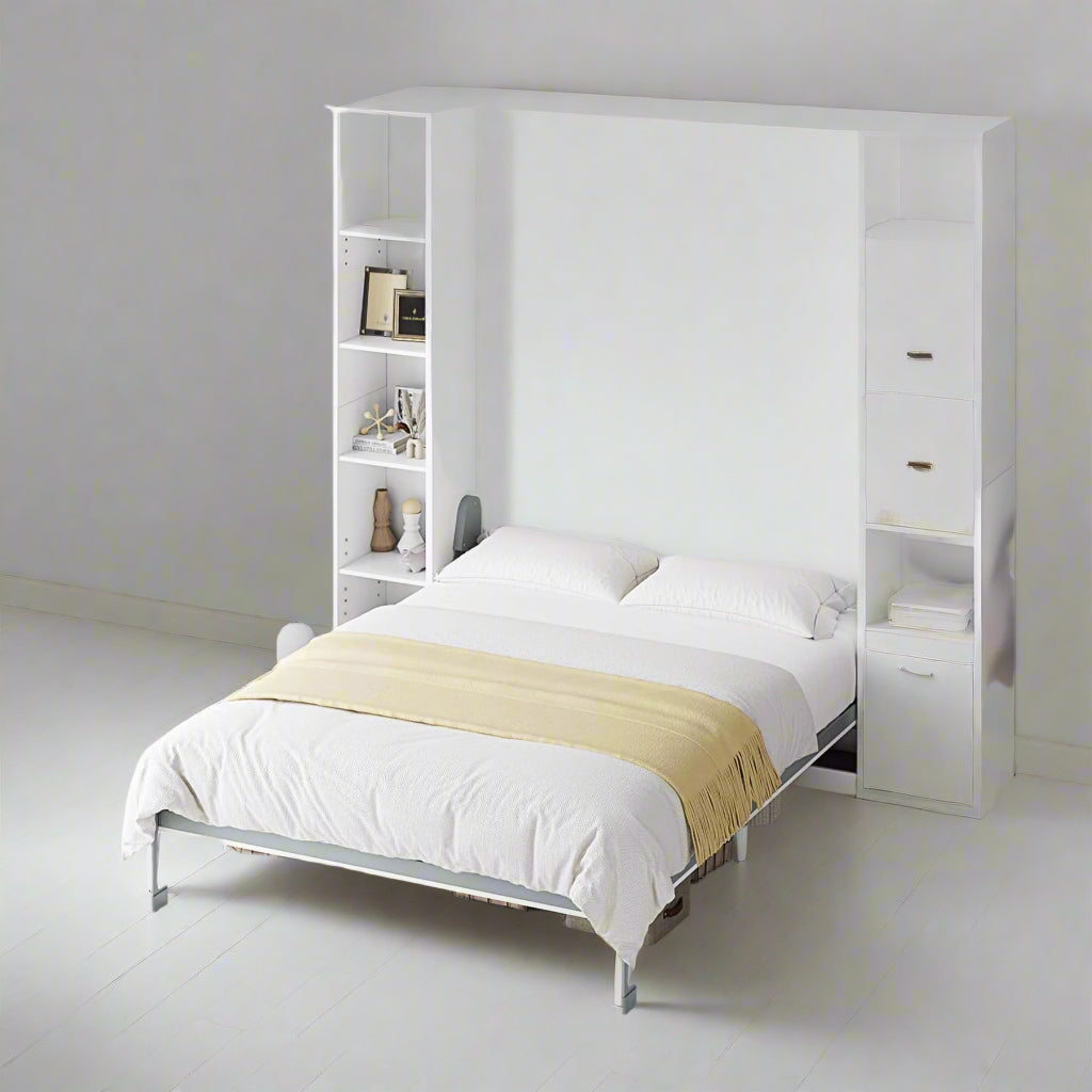 - Queen Murphy bed can be folded away into a cabinet to open up floor space in any room. A wall bed is the ideal space-saving furniture for a multi-use guest room, home office, or home gym.