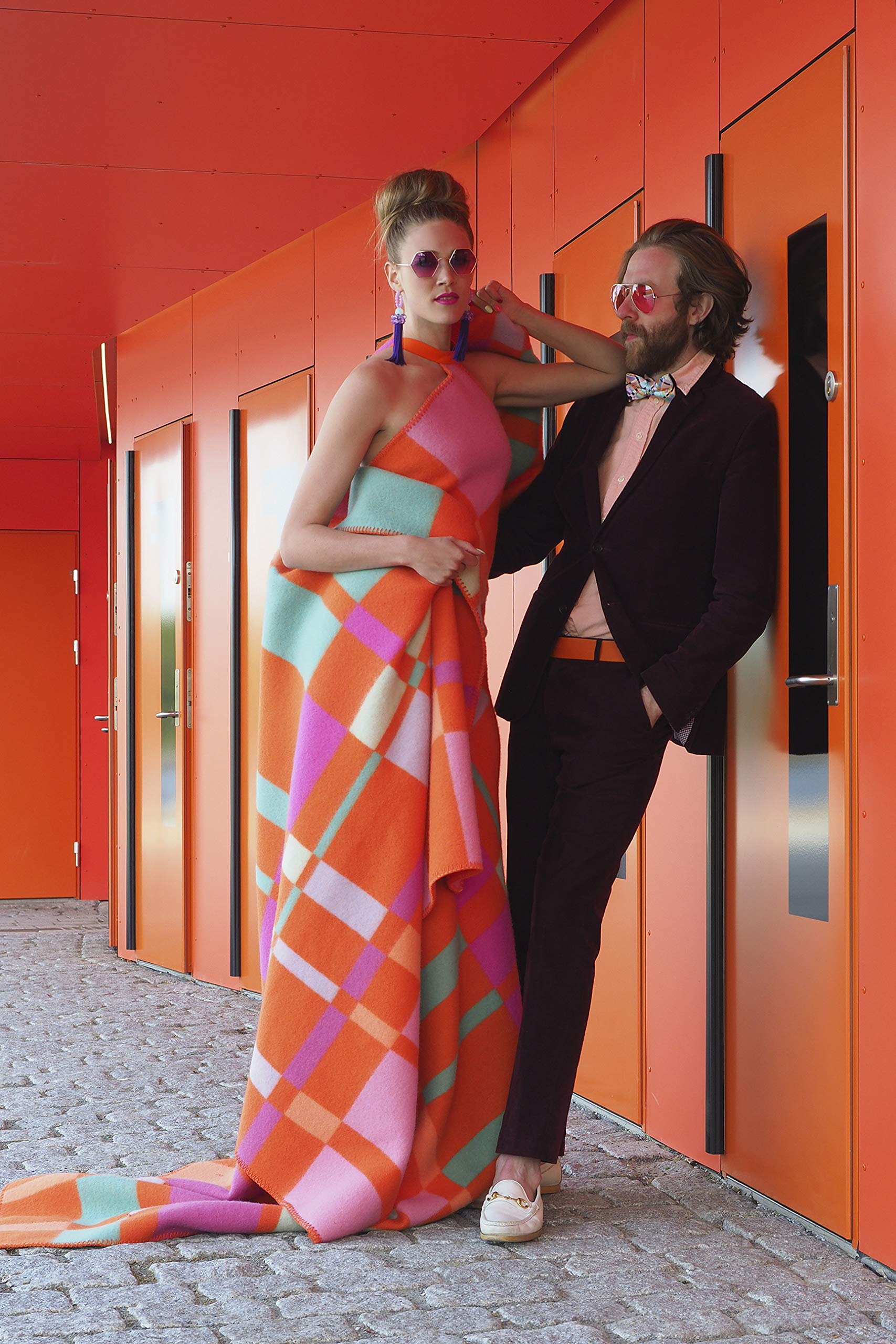 Tweed Designer 100% Norwegian Wool Throw in Many Patterns (City in Orange)