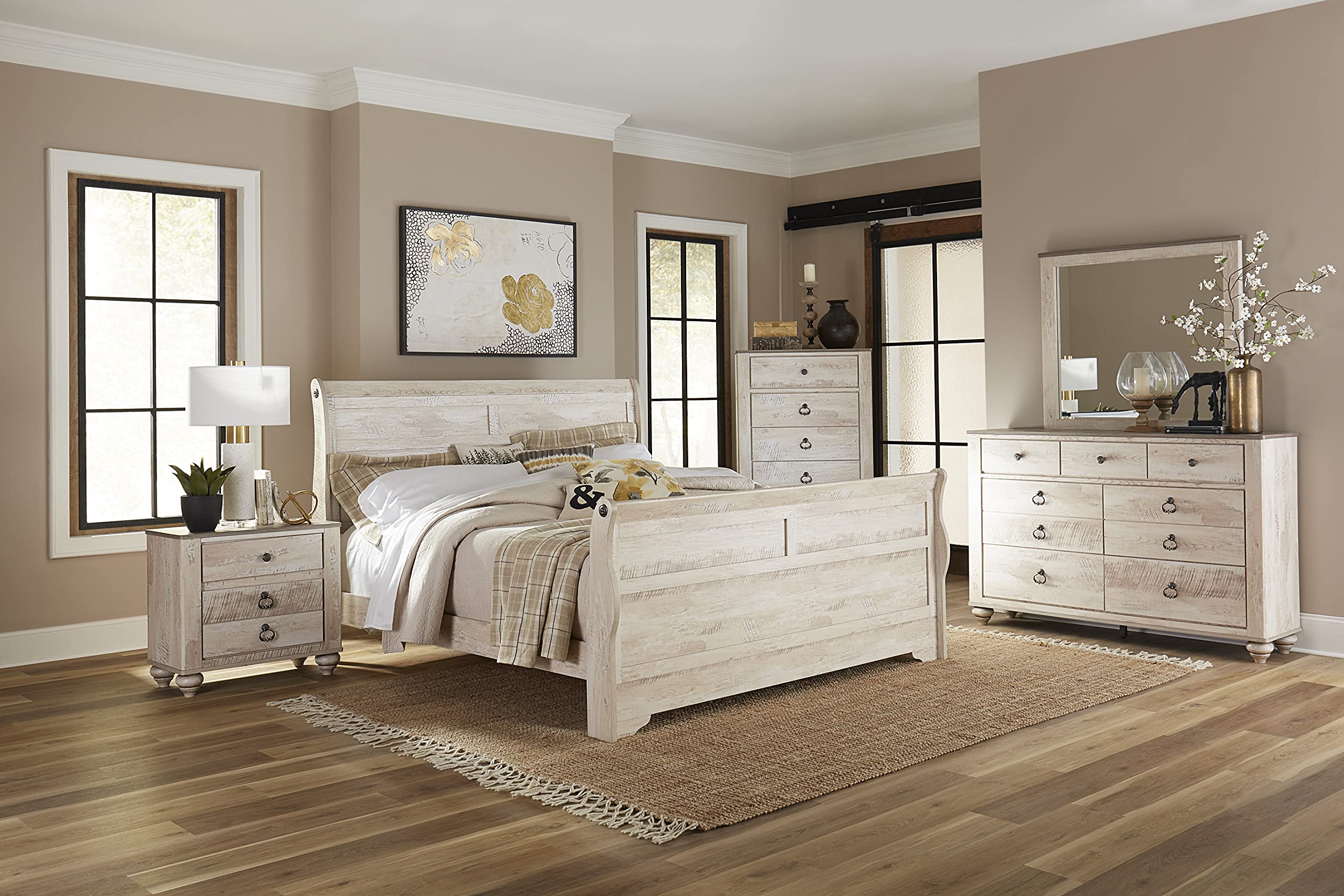 Imerland Contemporary White-wash Finished 6-Piece Sleigh Headboard Bedroom Set