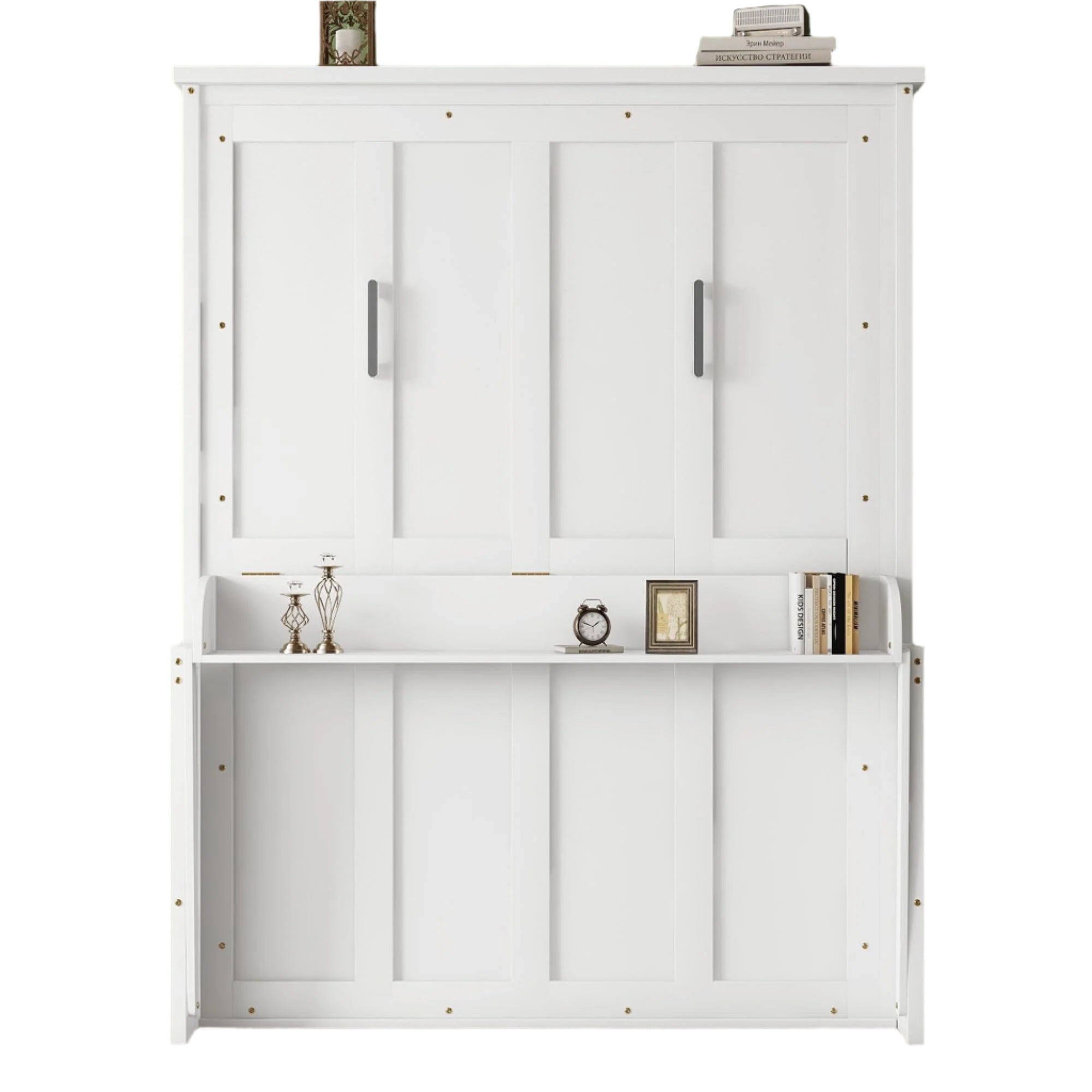 - [Murphy Bed with Built-in Shelf and Desk] Our Murphy bed features an innovative 9.5''(D) x 62.8''(L) front panel that serves as both a spacious shelf and an efficient workspace. Whether used for storage, decoration, or as a desk for working and studying, this multifunctional design adapts to meet your lifestyle needs seamlessly.