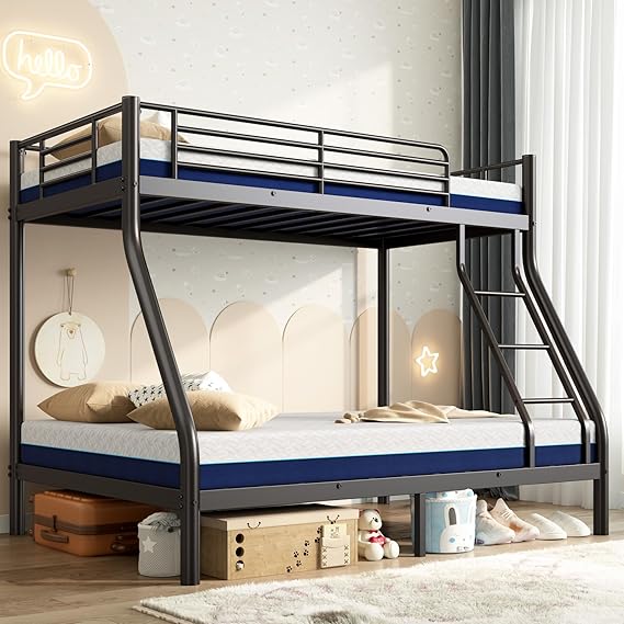 Twin Over Full Bunk Bed with Mattresses, All-in-One Metal Bunk Bed Set for Kids/Adults