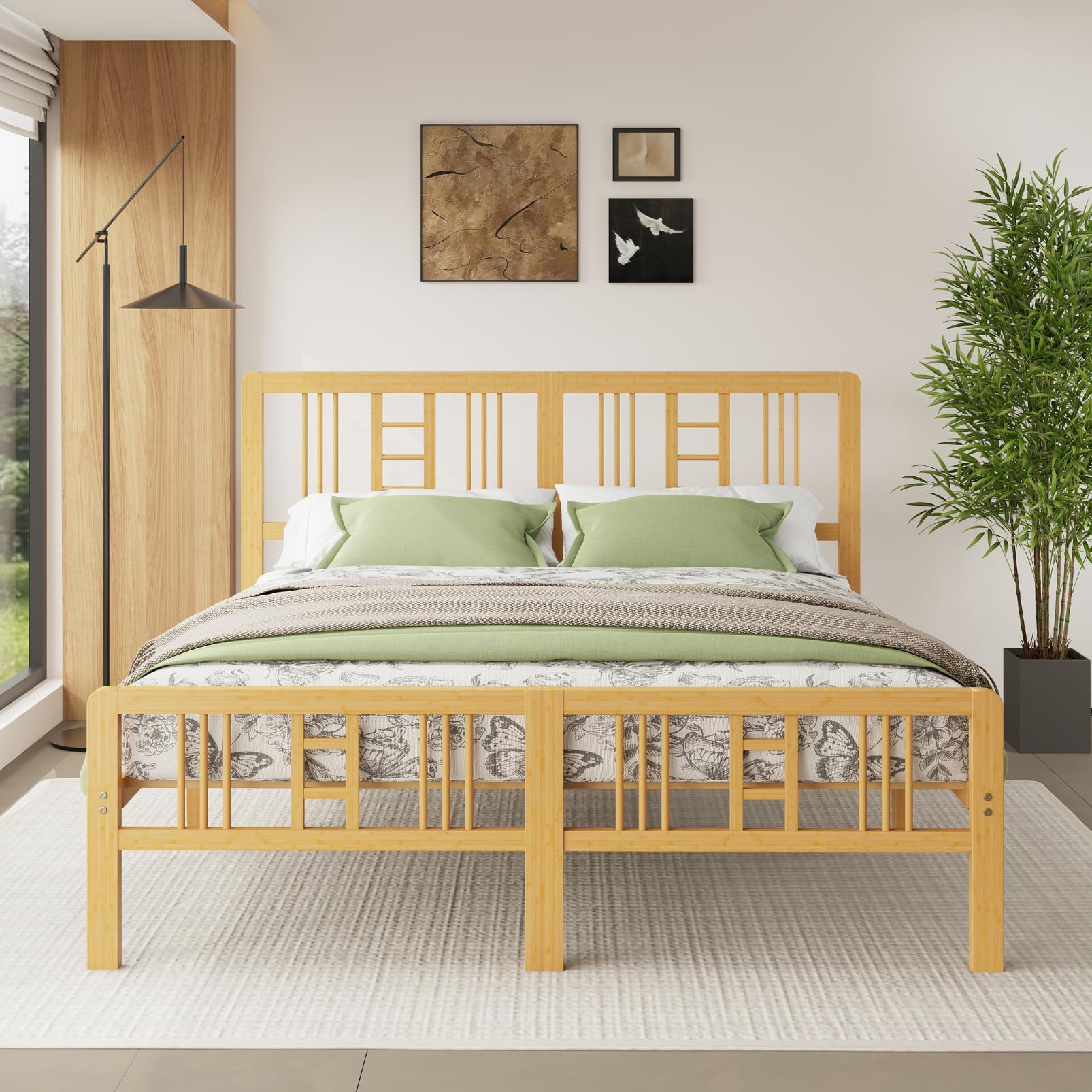 14 Inch Bamboo Wood King Size Platform Bed Frame with Headboard and Footboard