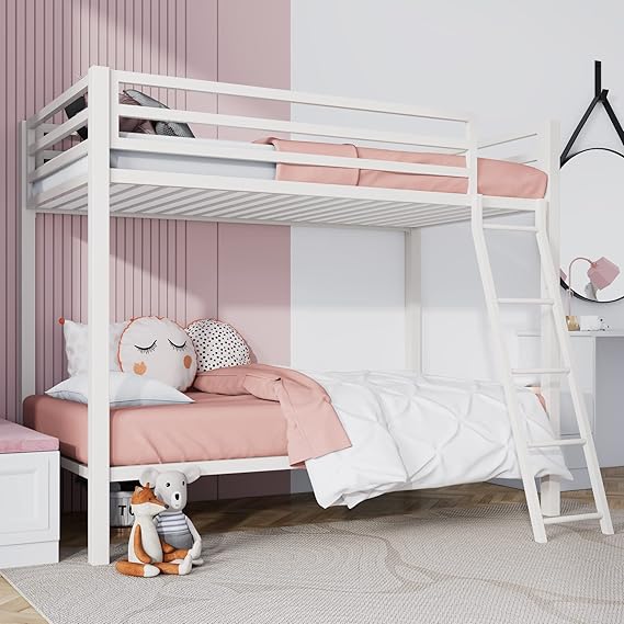 Loft Bunk Bed Twin Over Twin Size with Ladder and Guardrail,Heavy Duty Metal