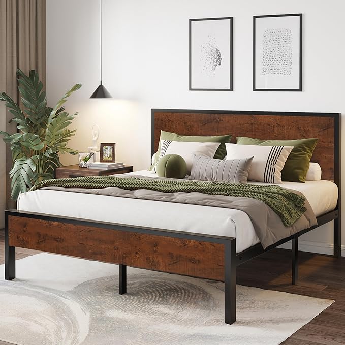 Queen Bed Frame with Headboard, Heavy Duty Platform Base with Under-Bed Storage