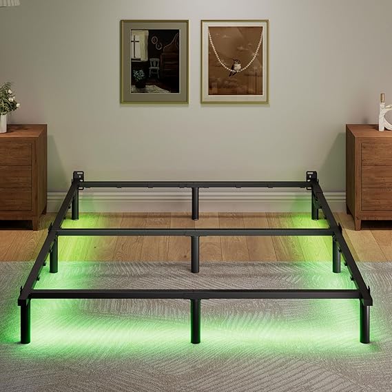 Queen Size Bed Frame with LED, 7 Inch Metal Steel Bedframe