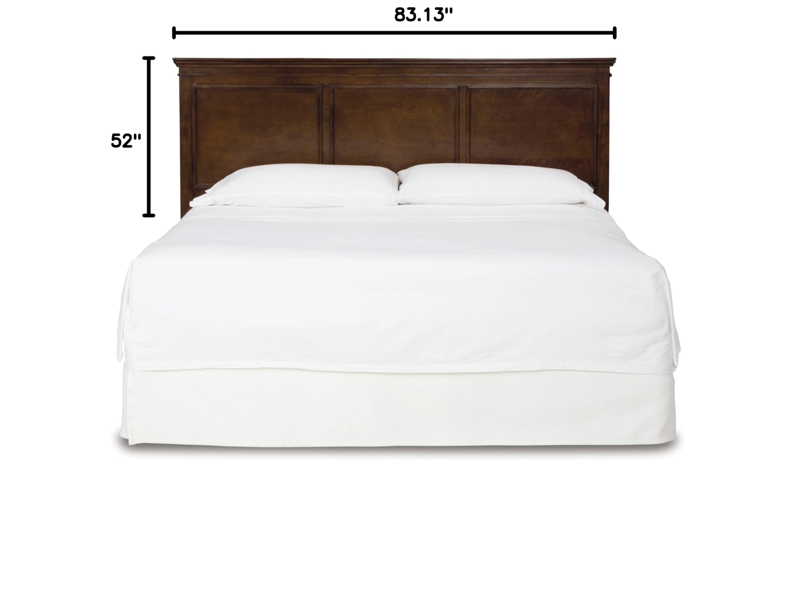 - HEADBOARD ONLY: Fits king and California king size beds. Measures 83.13" W x 3.25" D x 52." H. Panel to floor: 21"