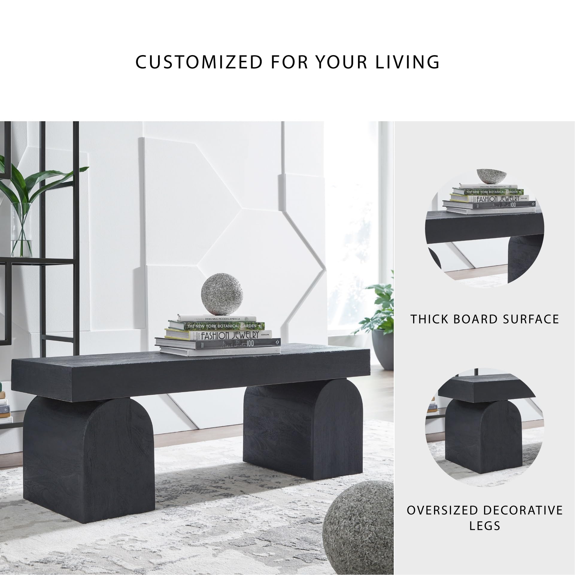 - ACCENT BENCH: The solid craftsmanship and contemporary style of this bench make it the perfect accent piece in your modern living room, home office or entryway