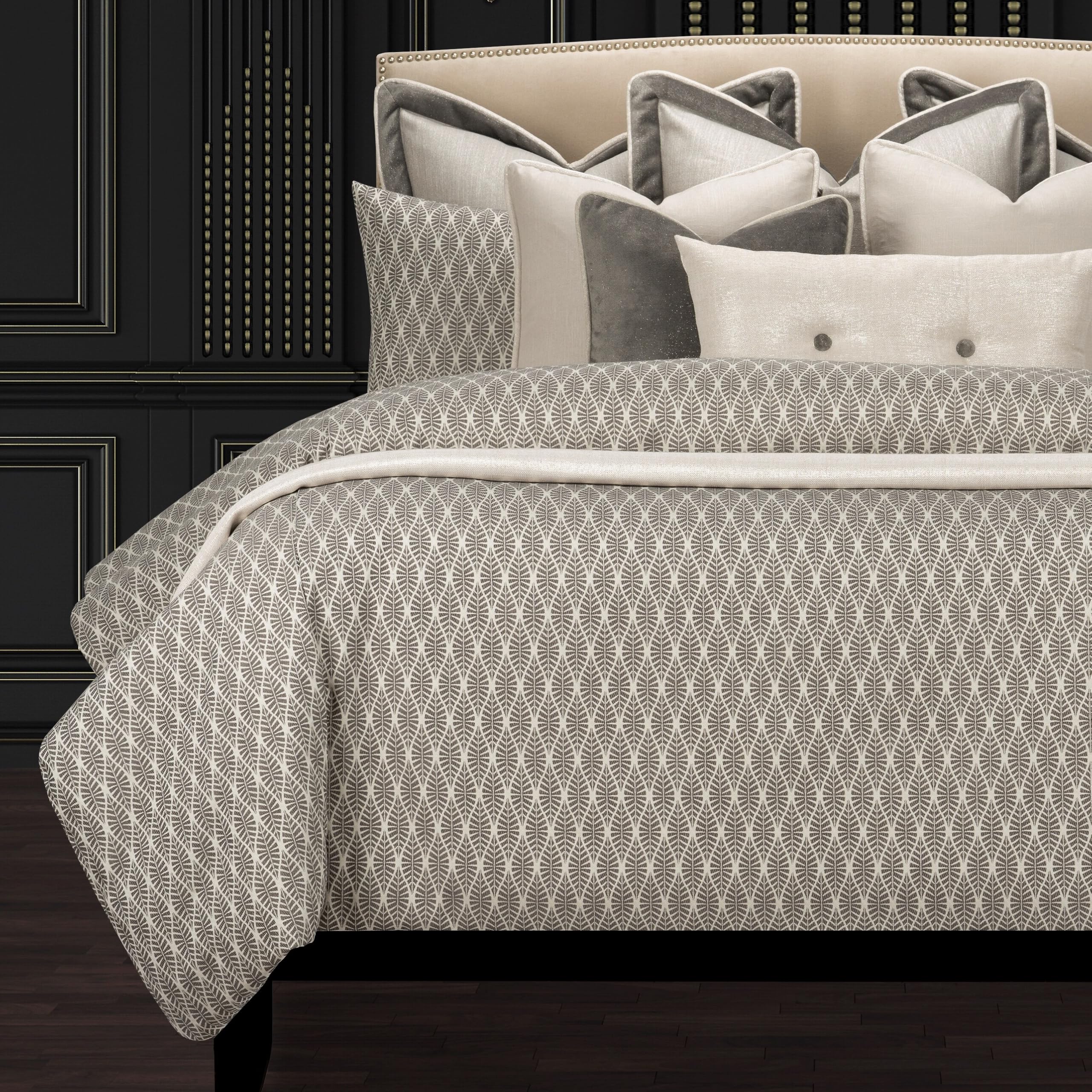 - Bring timeless elegance to your bedroom with the L'Opera Classical Supreme Duvet Cover and Insert Set. Featuring a natural leaf motif inspired by the modern deco movement, this set boasts a well-made, high-grade, and substantial fabric that is 70% polyester and 30% rayon. The soothing symmetrical leaf pattern on the duvet cover and shams, combined with tailored piping and luxurious flange, creates the ultimate curated supreme look
