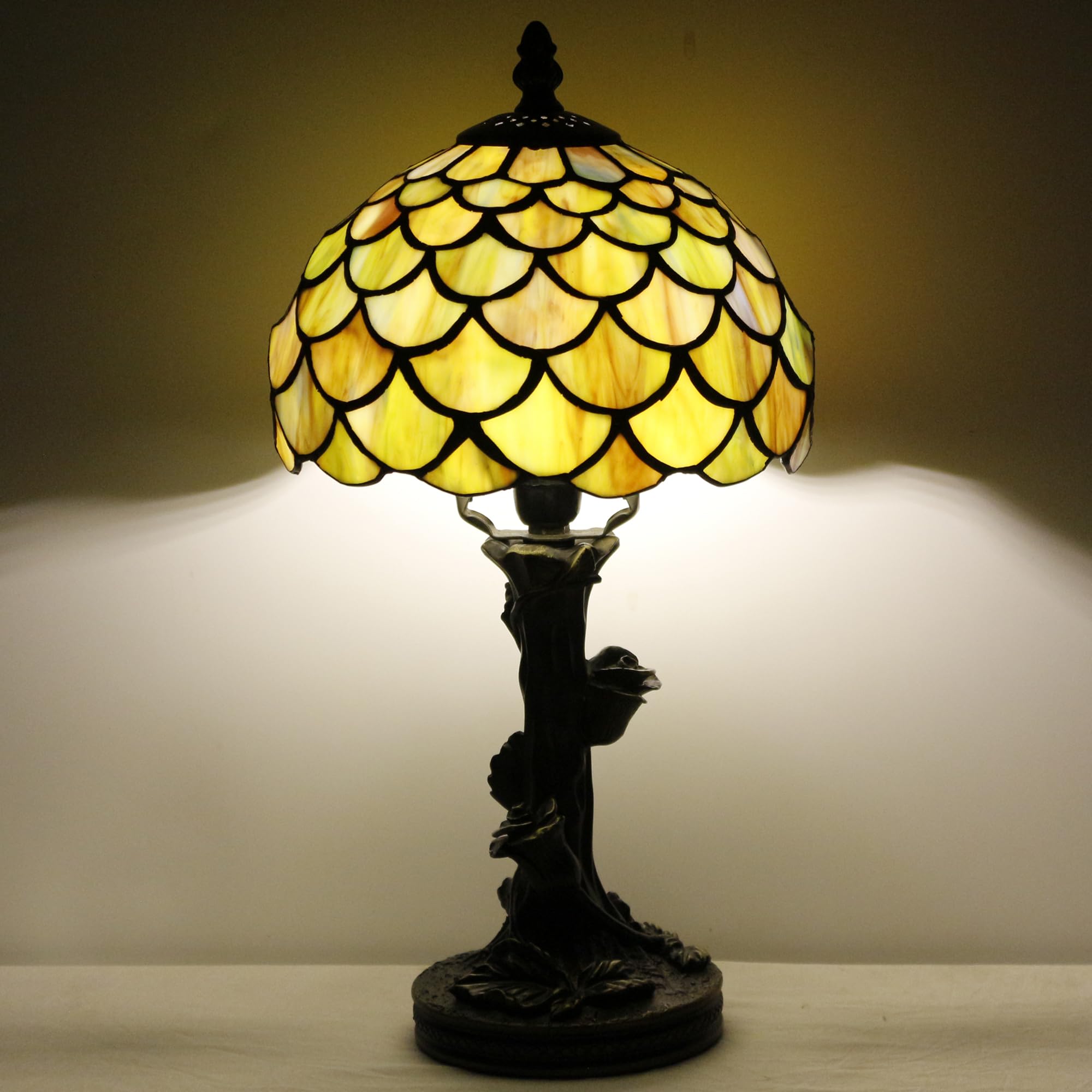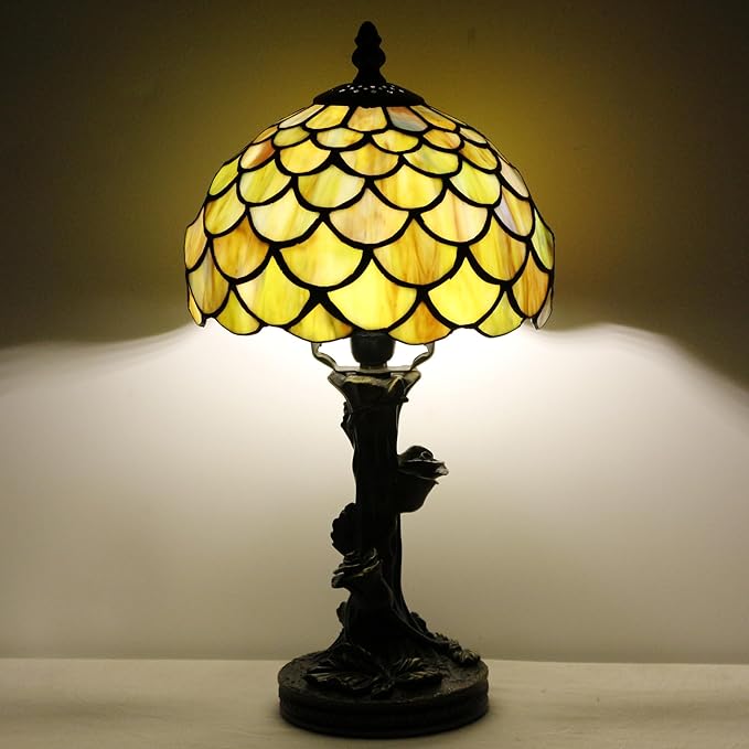 Table Lamp Stained Glass Lamp Yellow Fish Scales Style Bedside Light Mini Accent