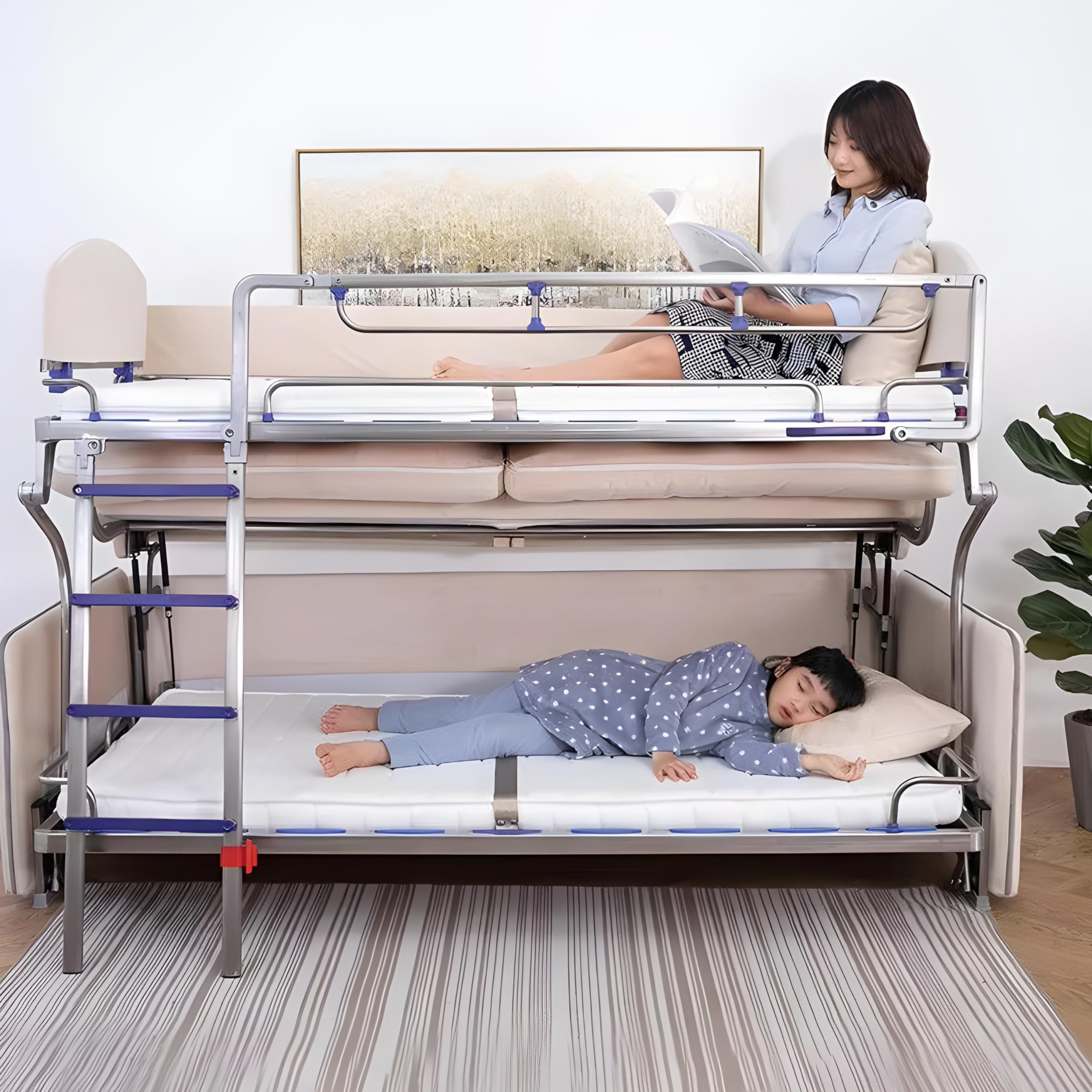 - Sophisticated 2-in-1 Living Solution Effortlessly elevate your interiors with this luxury convertible couch bed, shifting from a structured sofa to a stylish twin bunk. Ideal for upscale spaces where form meets intelligent function.