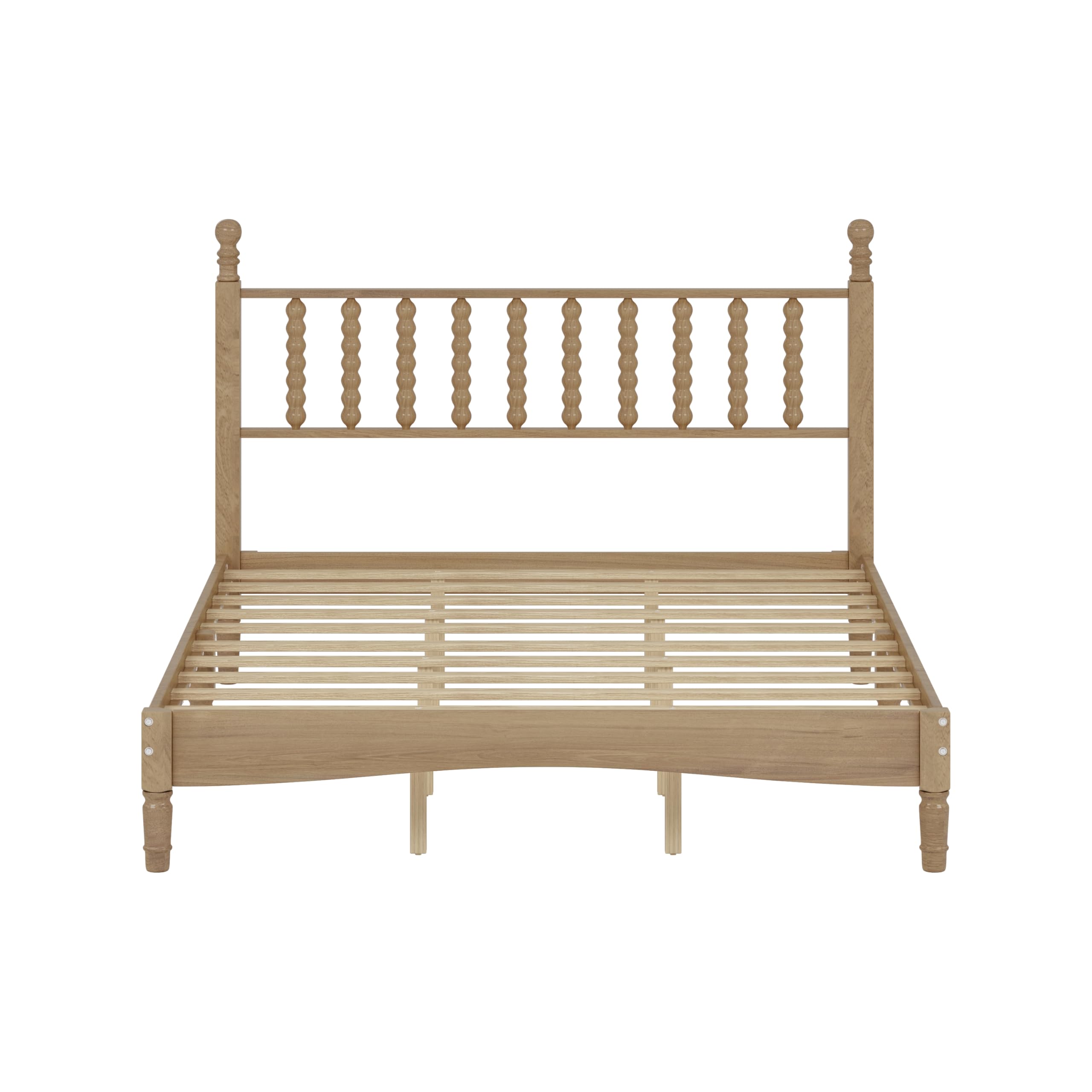 - Designed with a graceful gourd-shaped headboard, this queen-size platform bed brings a touch of retro elegance to any bedroom