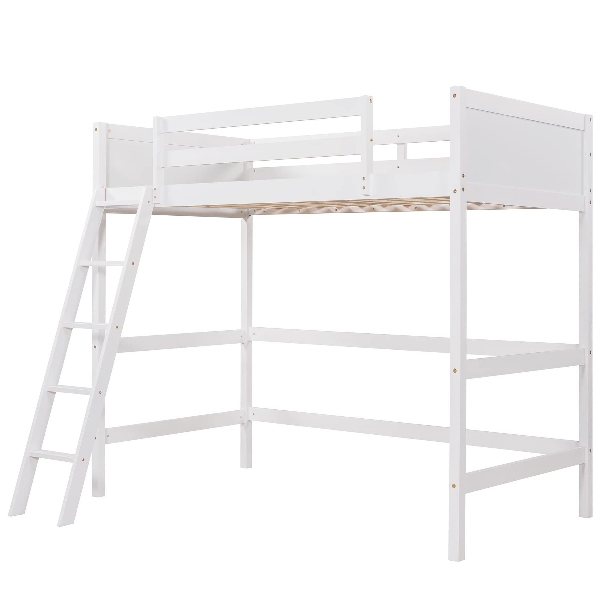 Twin High Loft Bed with Ladder, Wooden Loft Beds Twin Size for Kids Bedroom