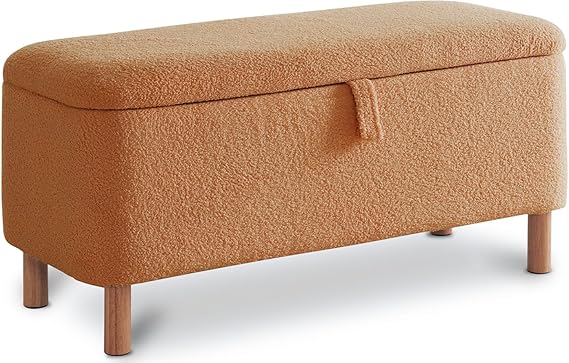 Bench for Bedroom End of Bed, Boucle Upholstered Padded Storage