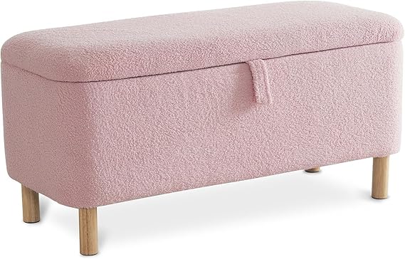 Ottoman Bench for Bedroom End of Bed, Boucle Upholstered Padded