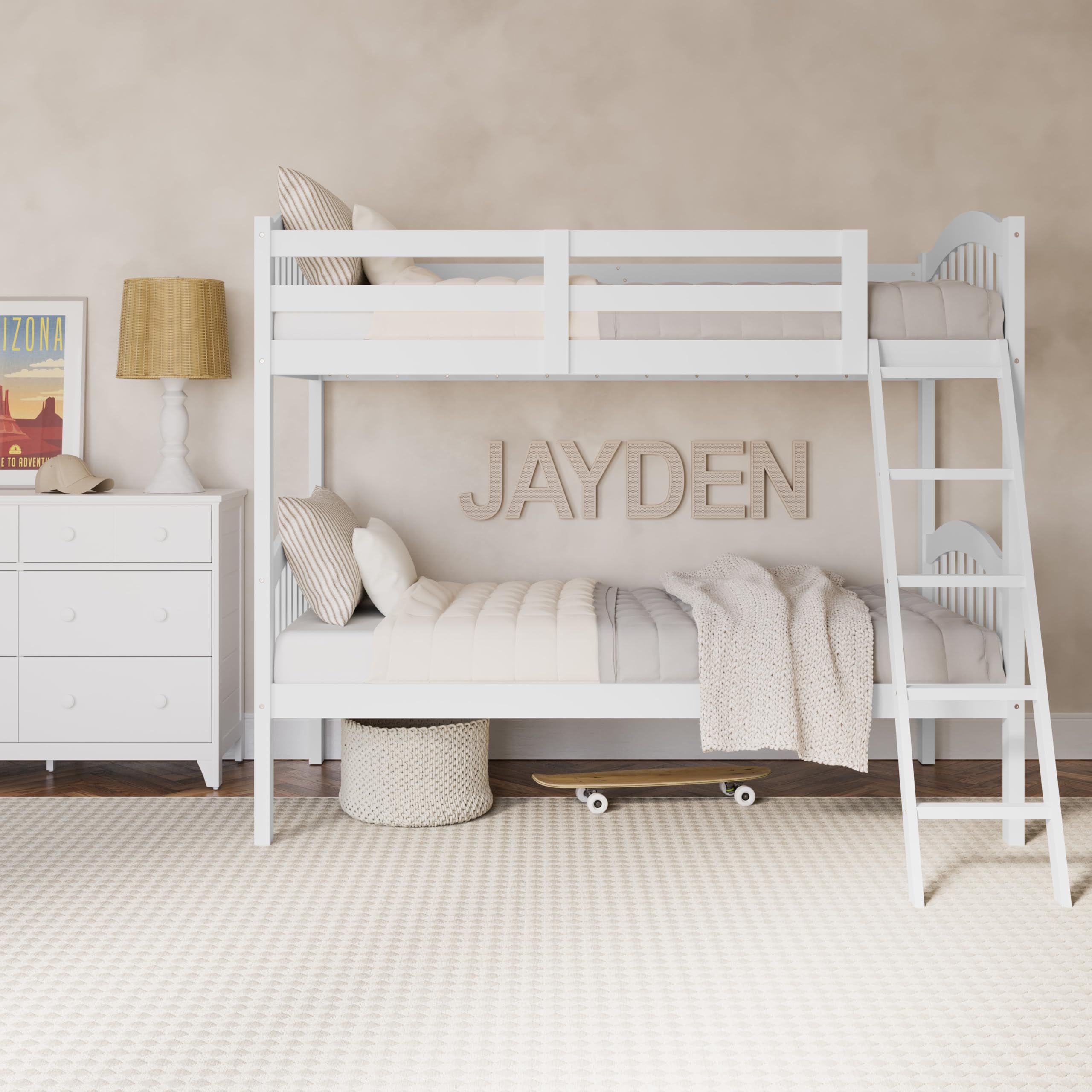 Long Horn Twin-Over-Twin Bunk Bed (White) - GREENGUARD Gold Certified