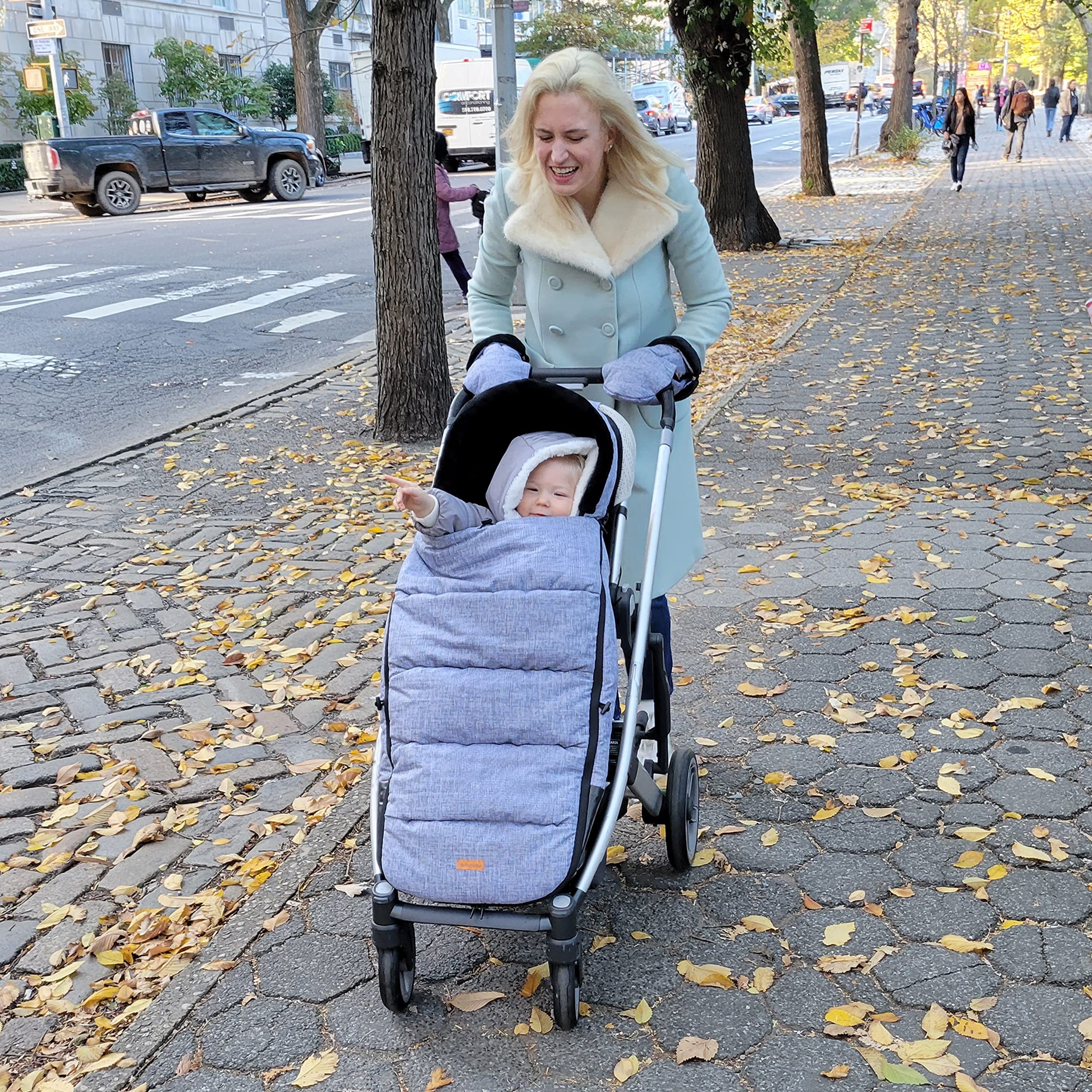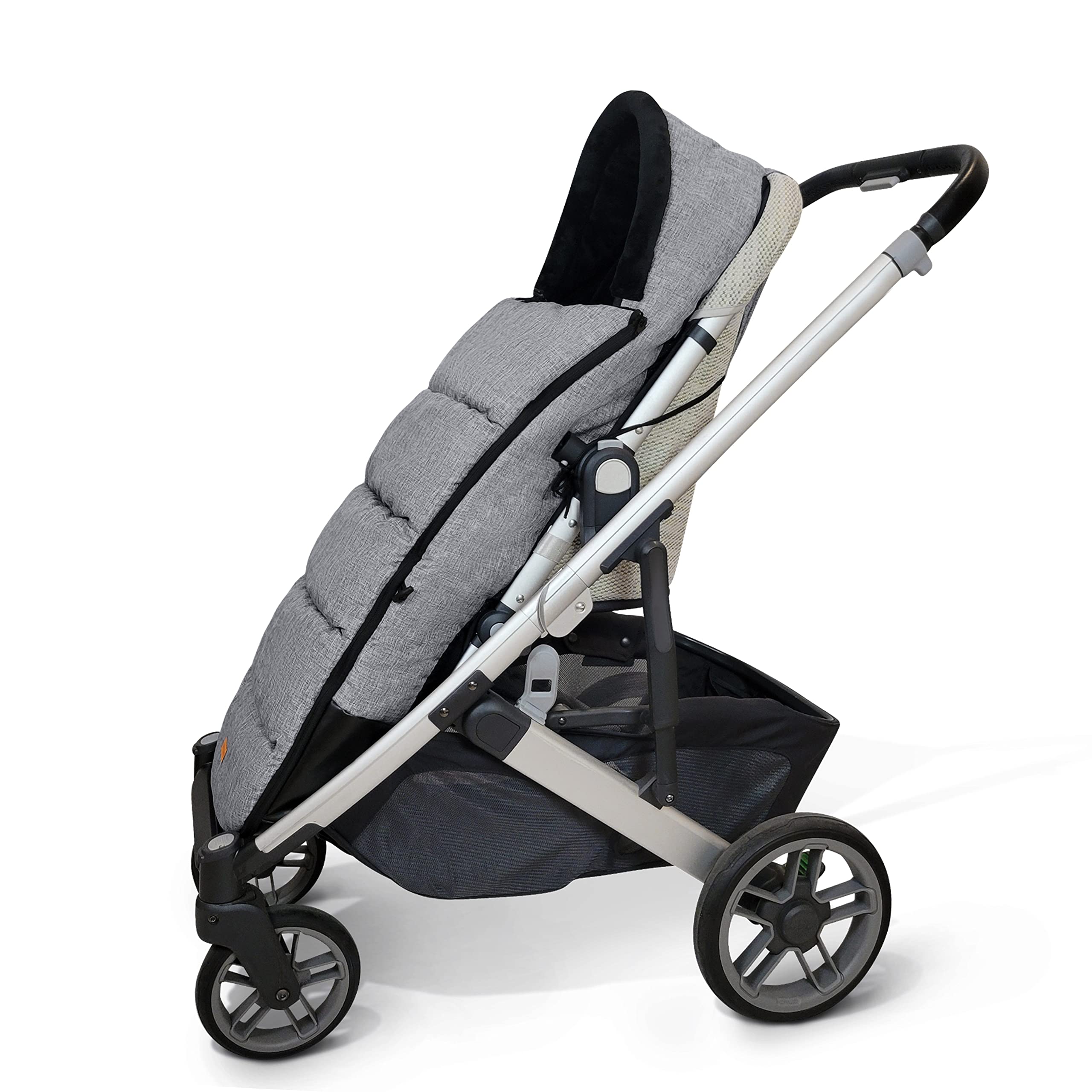 - D design ensures a snug fit on the stroller seat offering more space and comfort for baby/toddler. Top panel and anti-slip backing securely holds the CozyMuff in place
