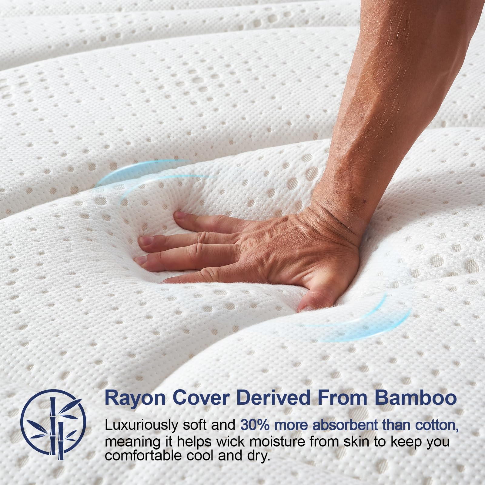 - Bamboo Rayon Cover For Cooling Sleep: The Rayon fabric cover made from Bamboo is superior soft, smooth and breathable, creating a luxurious sleeping surface. 3D mesh fabric sides and coil base promote more airflow throughout the mattress, so heat don’t get trapped. You’ll enjoy a cool night’s sleep with less tossing and turning.