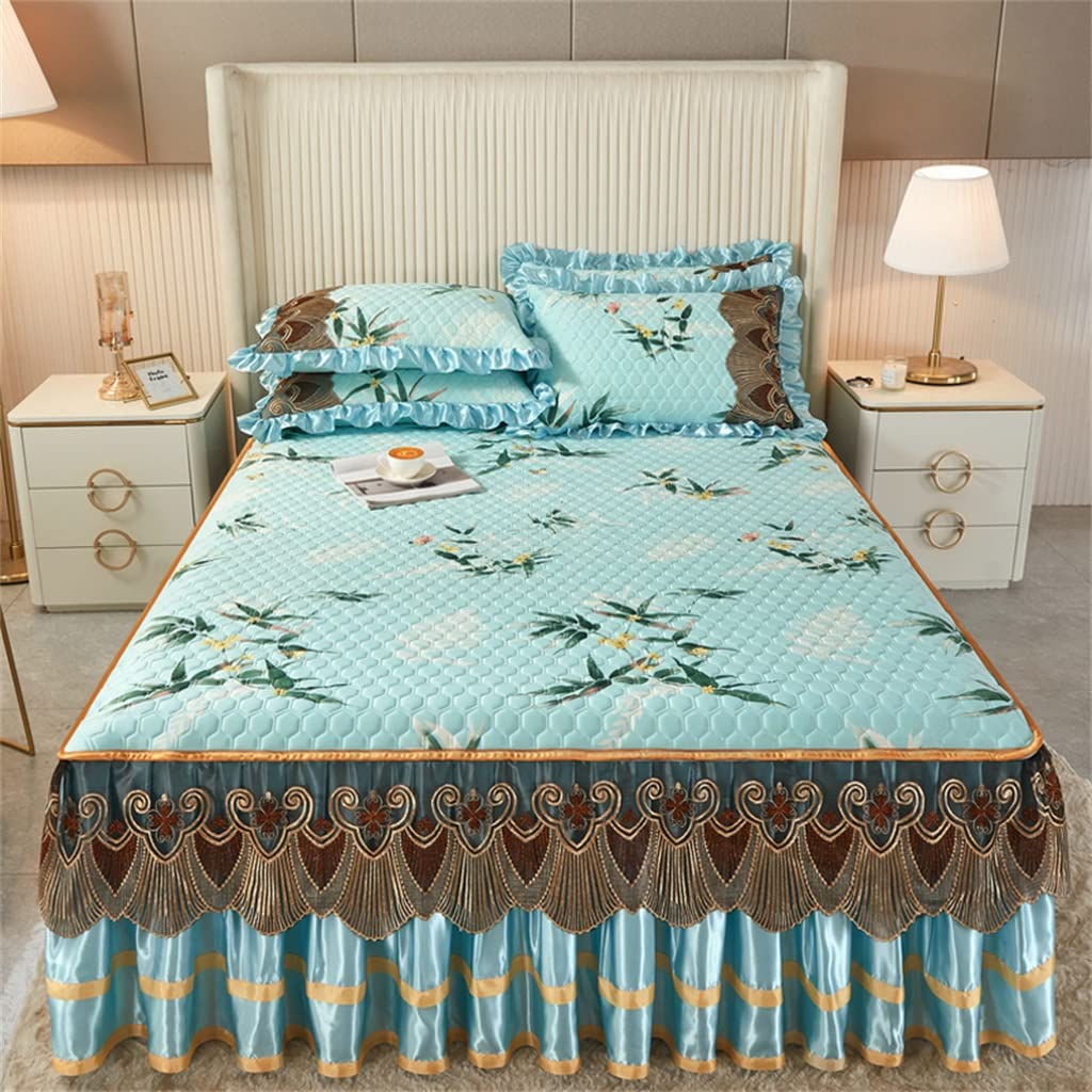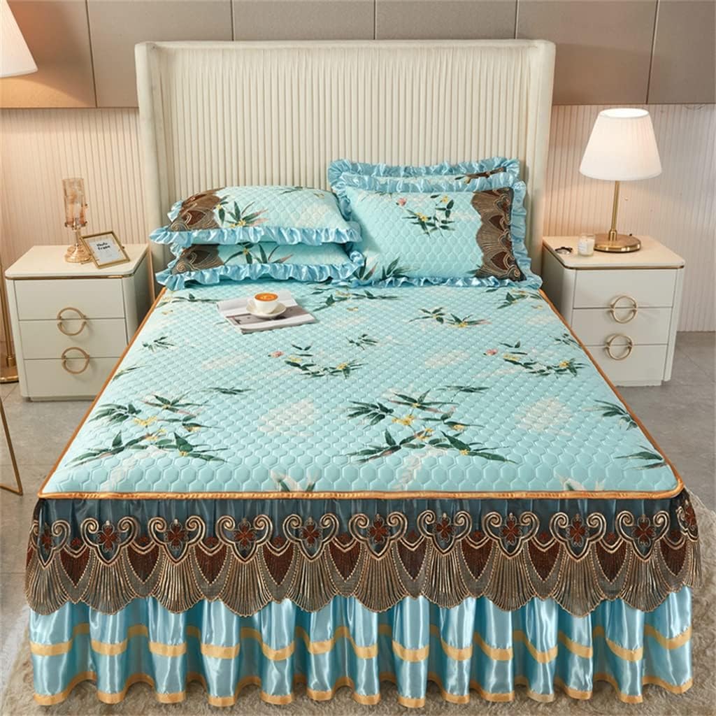 Summer Bed Skirt Three-Piece Set Hine Washable Summer Removable Bed Cover ice Silk