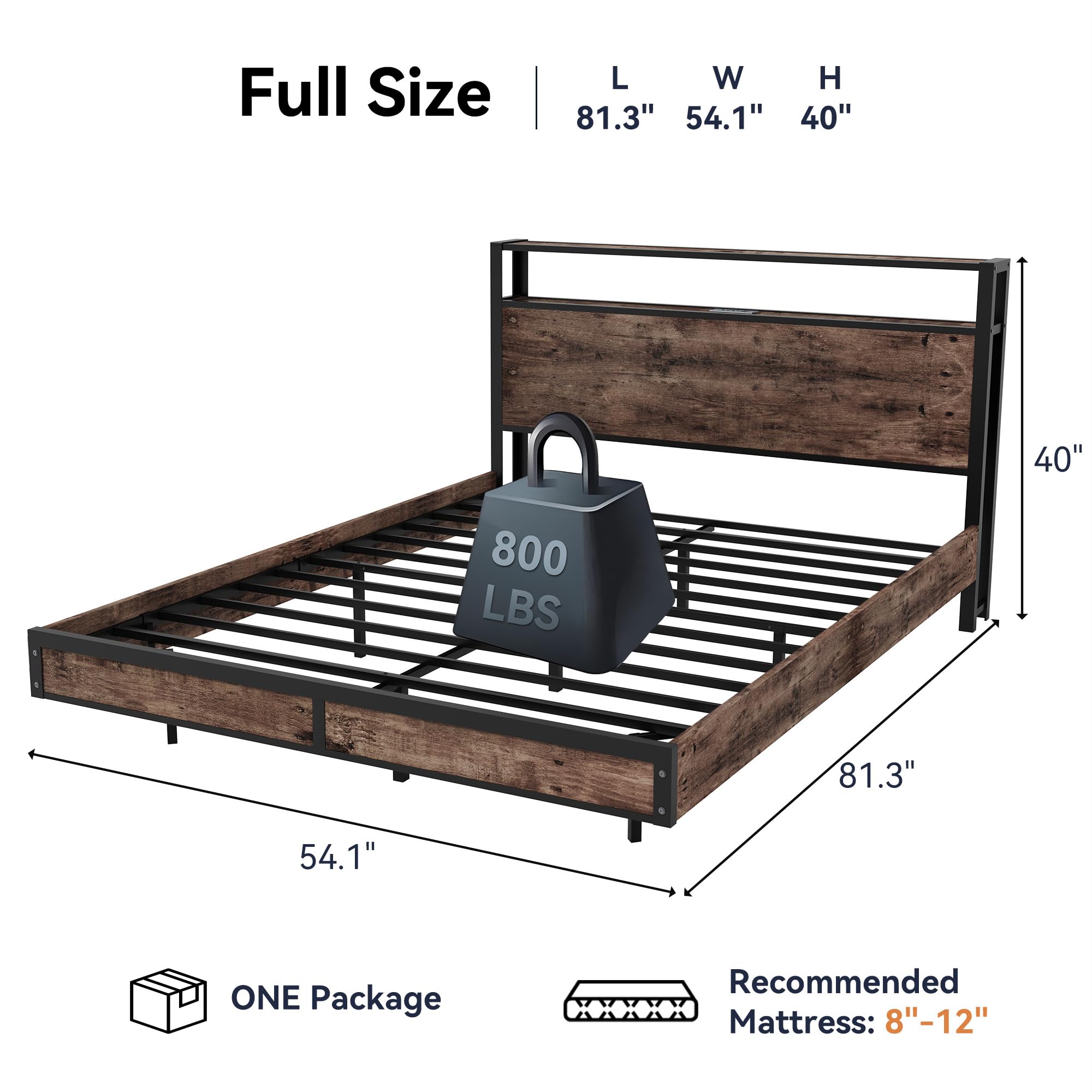 - 【Amazingly Sturdy Bed Frame】The bed frame adopts an all-metal support system with wood headboard, which is quite durable and stable. The industrial style with the vintage brown finish gives this full bed frame a modern look, while the embedded unti-sliding floating design is full of personality