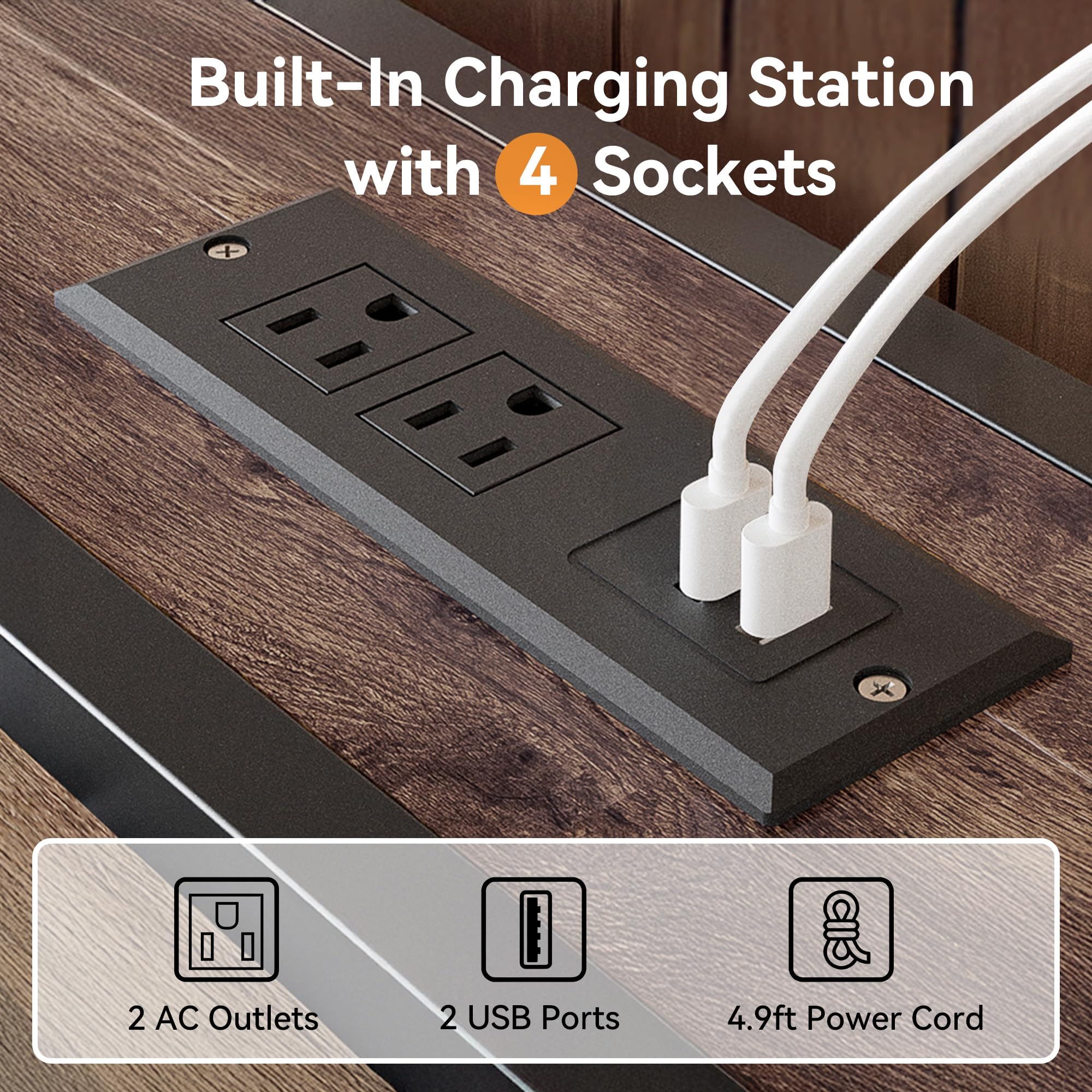 Susalt Full Size Bed Frame with Storage Headboard, Sturdy Metal Platform Bed Frame with LED Lights and Charging Station, Easy Assembly, No Box Spring Needed, Noise Free, Rustic Brown