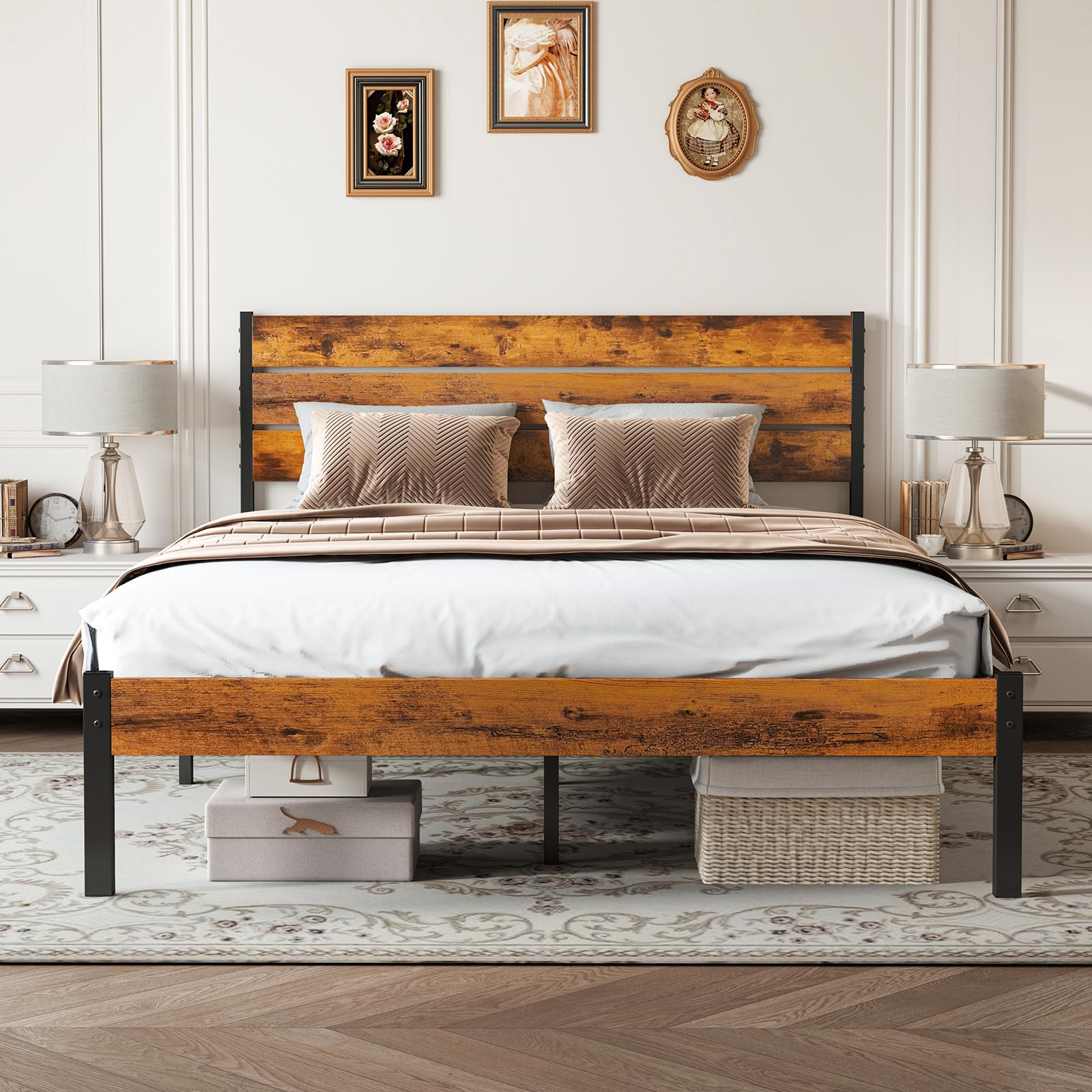 - INDUSTRIAL APPEARANCE: The headboard and footboard are made up of waterproof, scratch-resistant wood panels. Rustic headboard and footboard combined with vintage metal slats are retro and elegant, adding an industrial touch and unique flavor to your room. Perfect for most rooms!