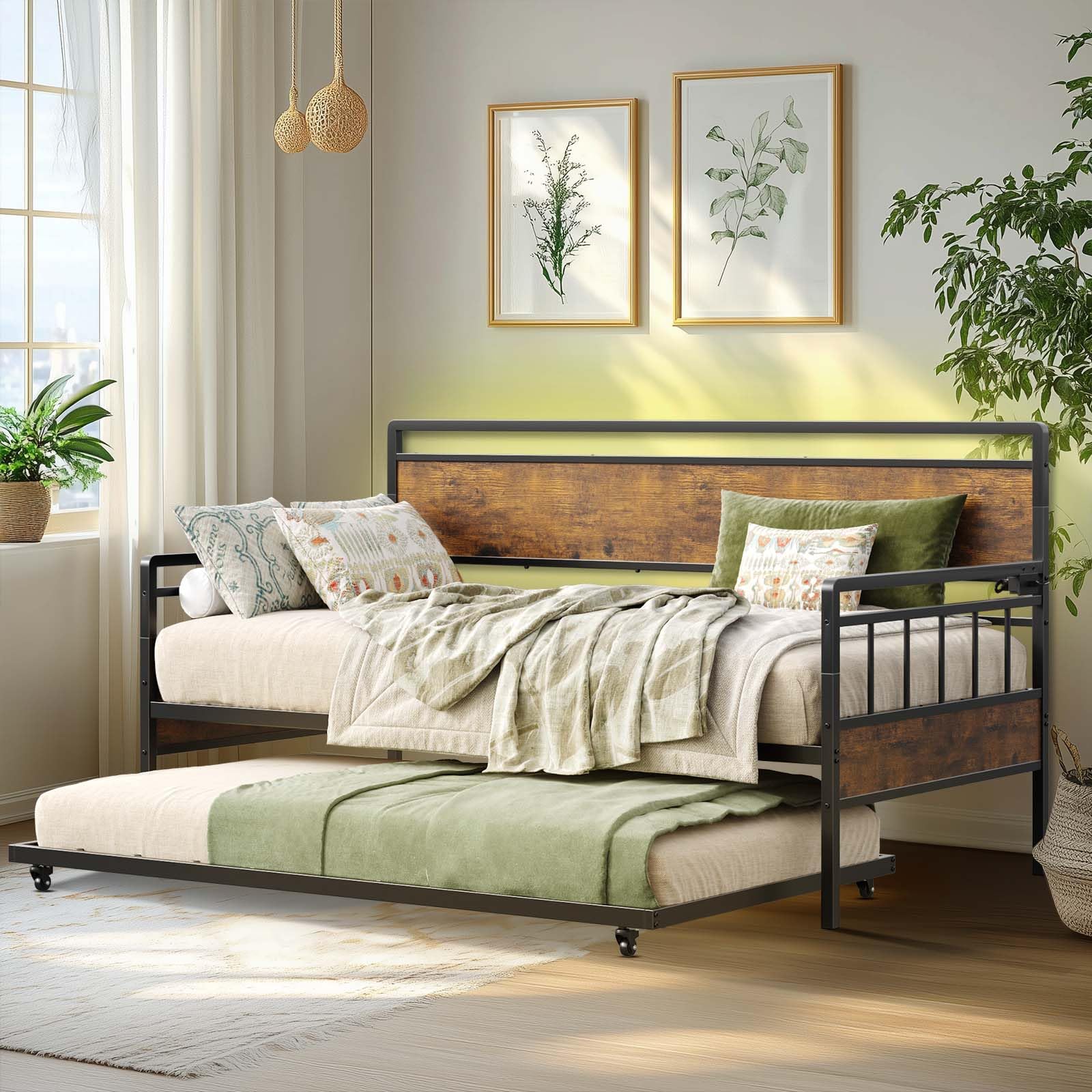 - Our metal daybed with trundle includes 2 USB ports, allowing you to easily charge 2 devices at once and say goodbye to searching for outlets or dealing with tangled cords, making it perfect for keeping your devices powered overnight