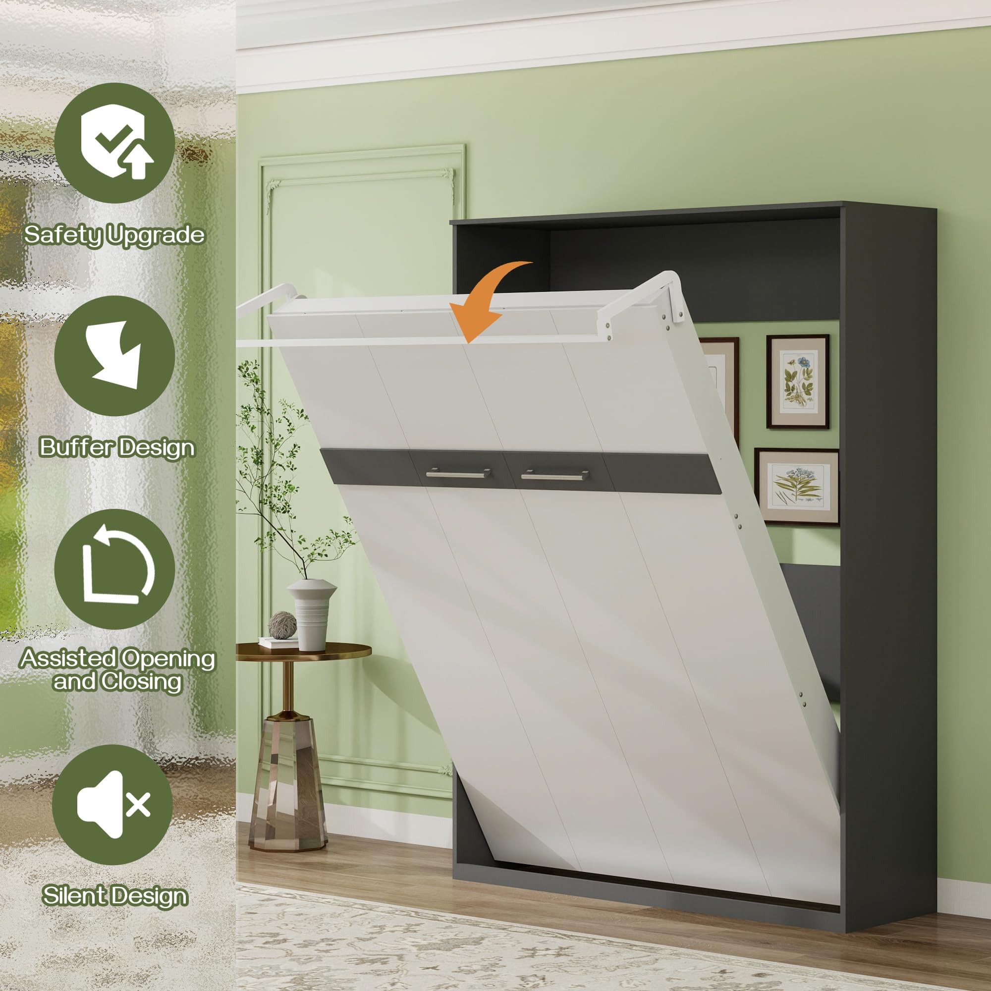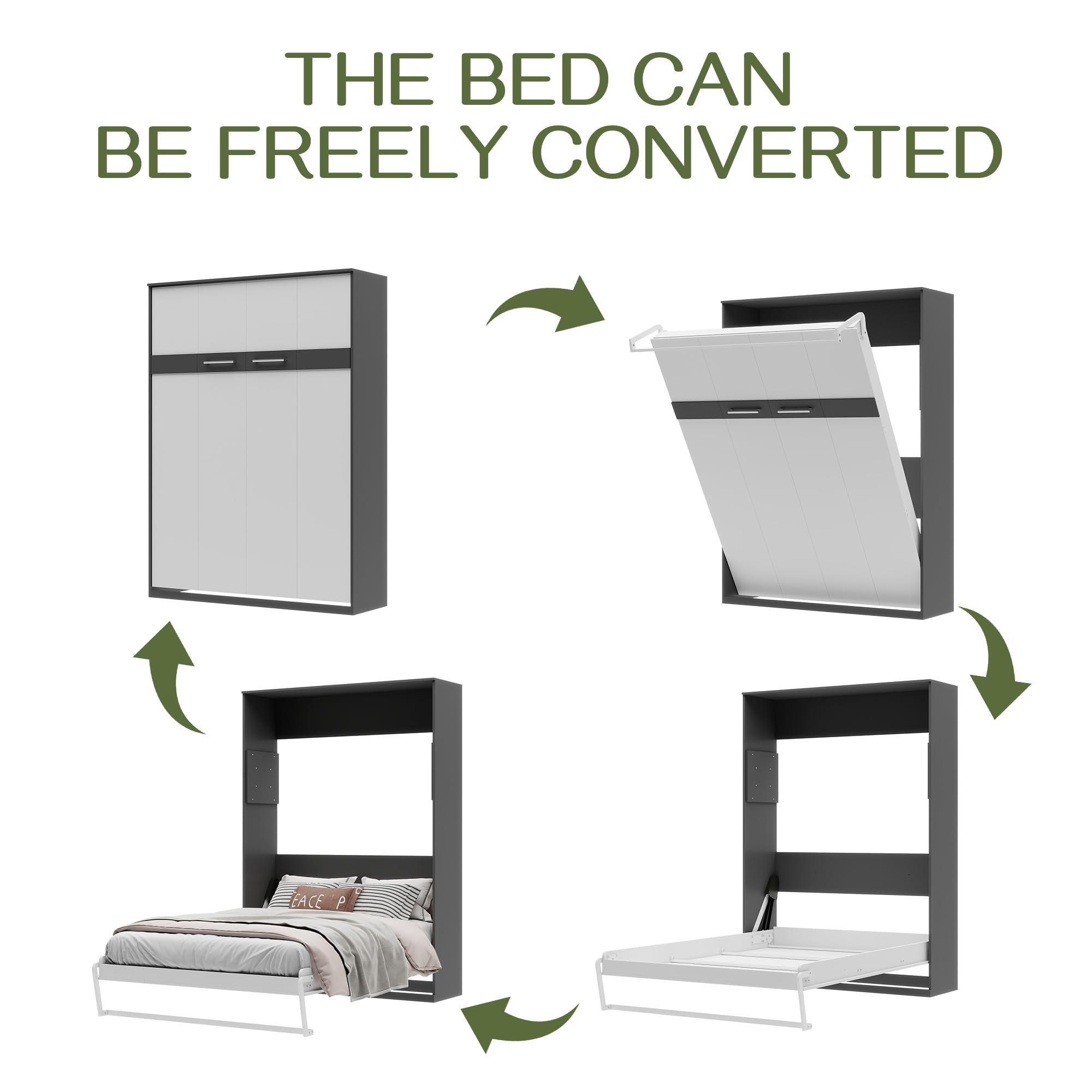 - Space-Saving Solution:This Murphy Bed is an easy way to transform your room, seamlessly switching between a stylish wall unit and a full-sized platform bed. The Murphy Bed platform fully lowers and raises to blend into the wall unit, freeing up valuable floor space and keeping the room organized. Its versatile design doubles as a comfortable bed, perfectly fitting into any room setting