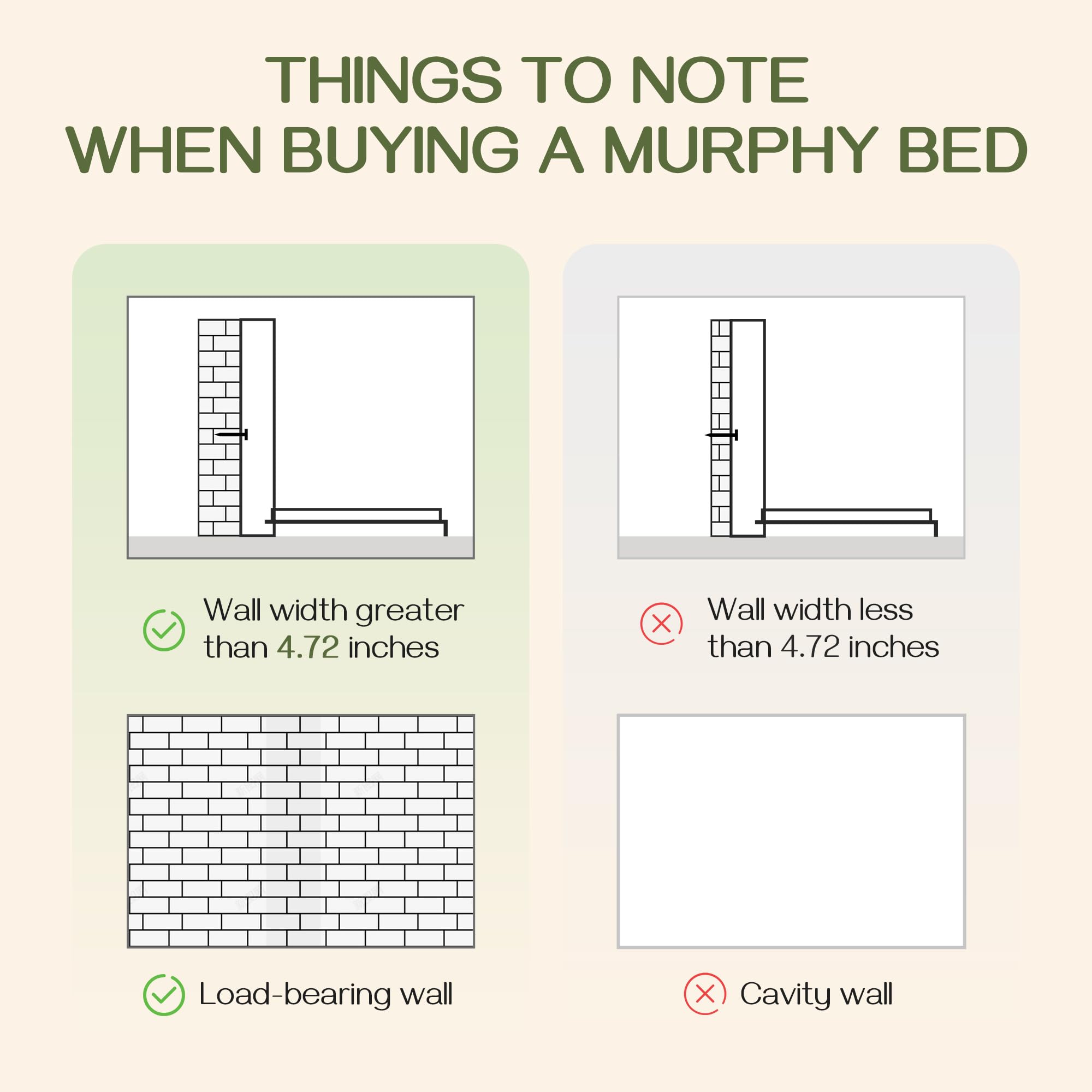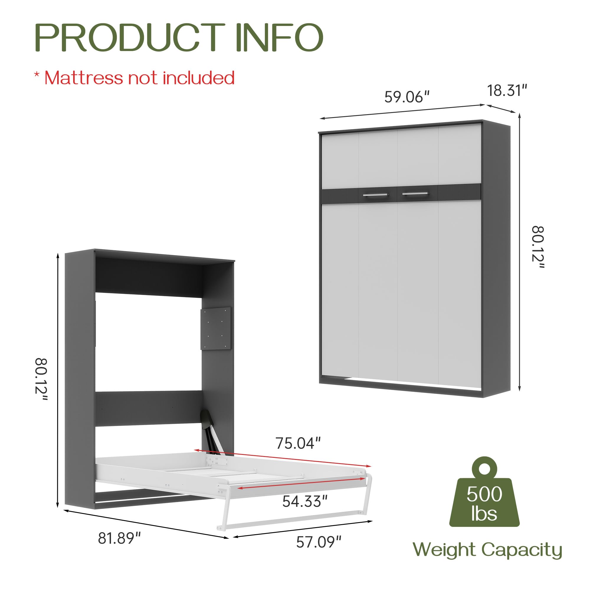 - Murphy Bed:The Murphy Bed full folds down to 59.06''L*18.31''W*80.12''H, saving space and providing ample sleeping space without compromising room functionality. The Murphy Bed does not include a mattress. Assembly is simple, with clear instructions and tools included for your convenience