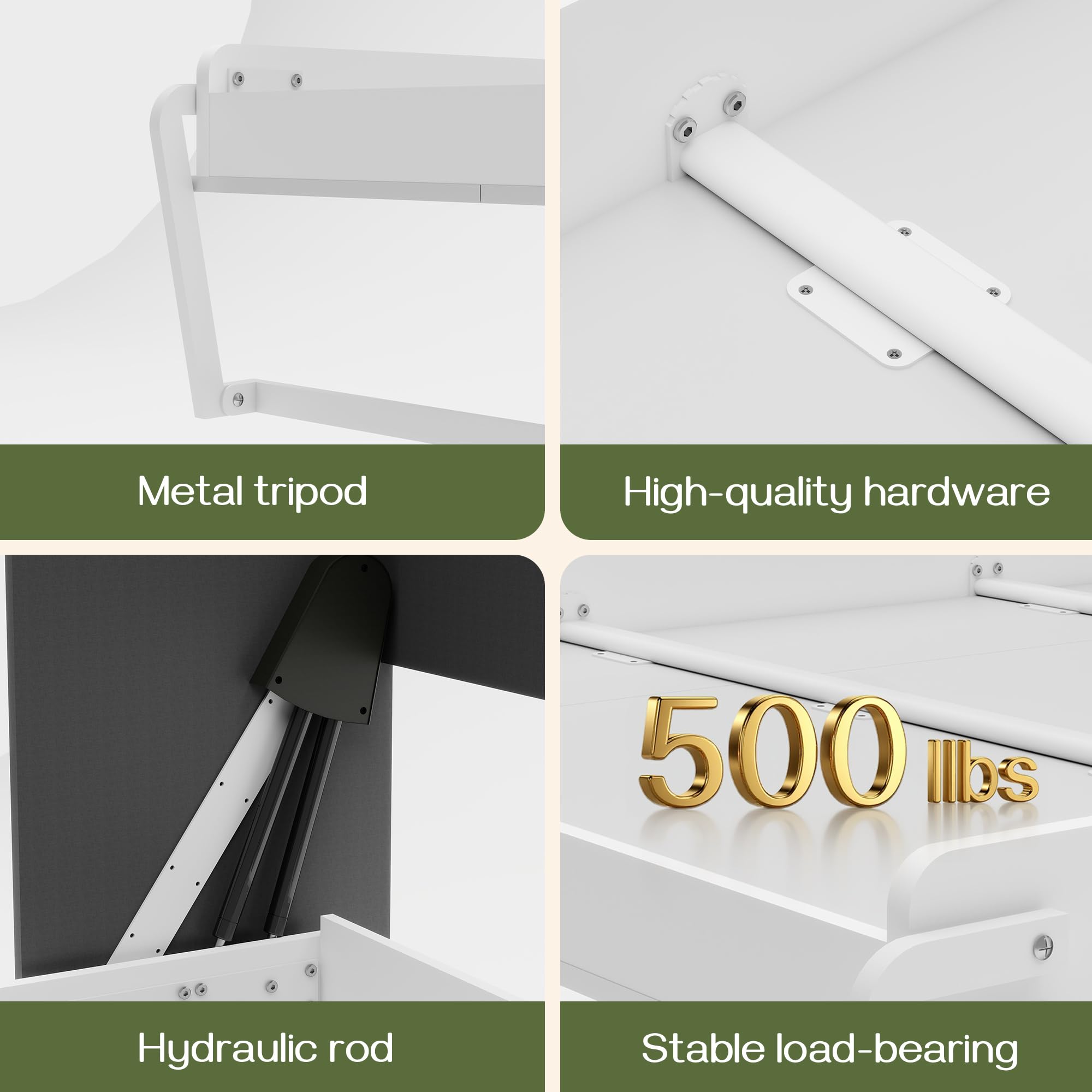 - Modern Elegance:This White full-sized wall bed features shaker-style trim and gold handles, and hides most of the screw holes, making the bed more beautiful and sophisticated, elevating the style of your room. Our Murphy Bed easily complements your existing decor, creating a stylish and harmonious overall look
