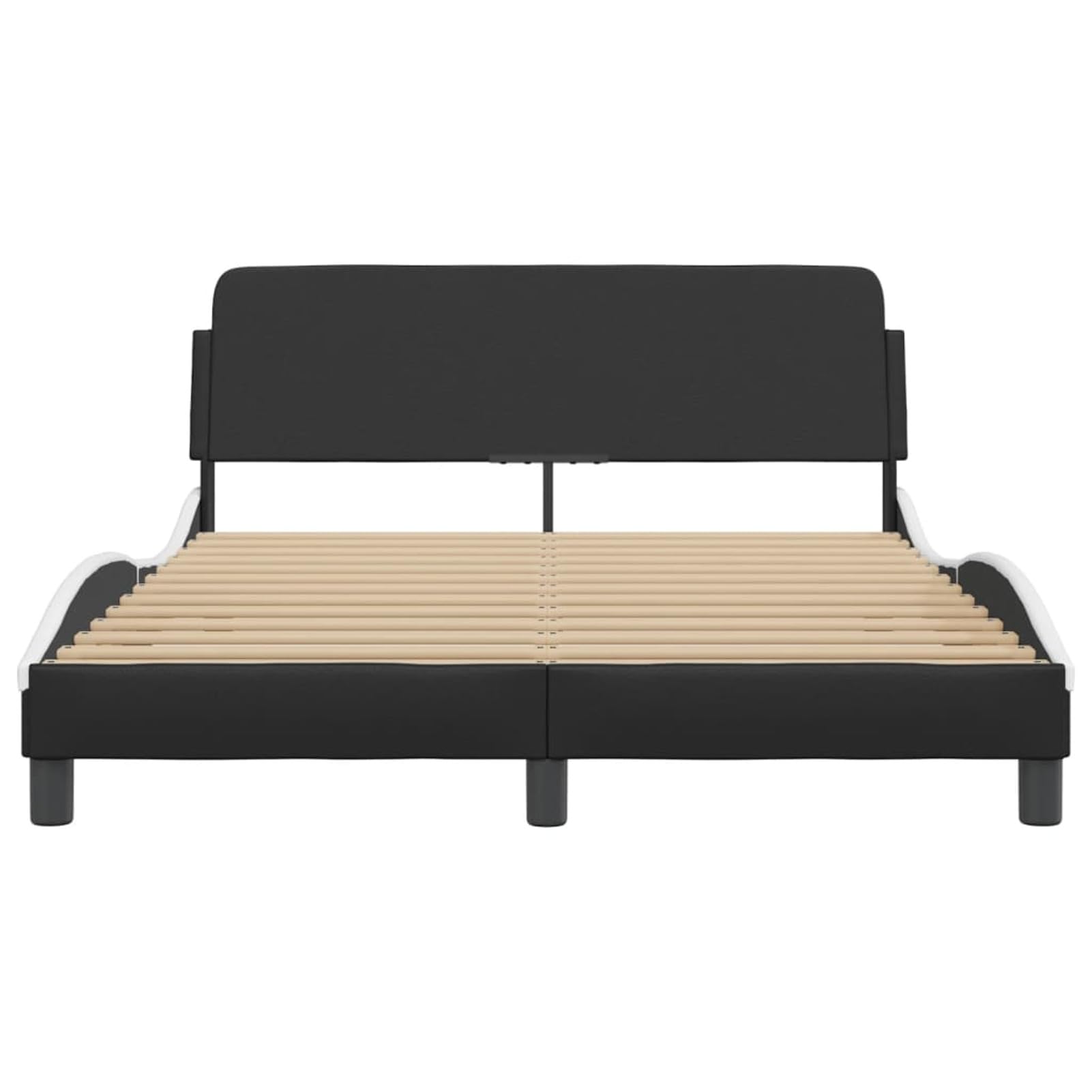 Bed Frame Without Mattress Black and White 53.9 x 74.8 Inch Faux Leather Full Size