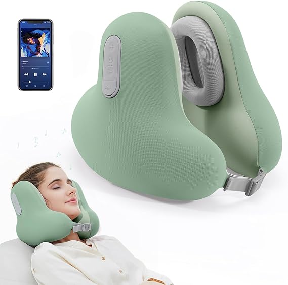 - 𝐁𝐋𝐔𝐄𝐓𝐎𝐎𝐓𝐇 𝐇𝐄𝐀𝐃𝐒𝐄𝐓: This neck pillow is equipped with an audio feature that allows you to play audio from your phone, tablet, computer, etc. via Bluetooth, with noise-canceling high-definition sound quality that allows you to enjoy your favorite music while working or relaxing.