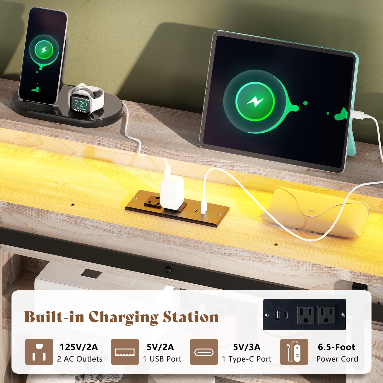 - Convenient Charging & LED Lights: Includes a built-in charging station with 2 AC outlets, 1 USB port, and 1 Type-C port to keep your devices charged. Create a relaxing ambiance with 60,002 customizable LED light colors controlled via remote or App
