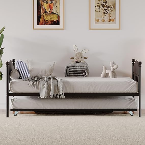 Trundle, Twin Bed Frame with Sturdy Metal Foldable