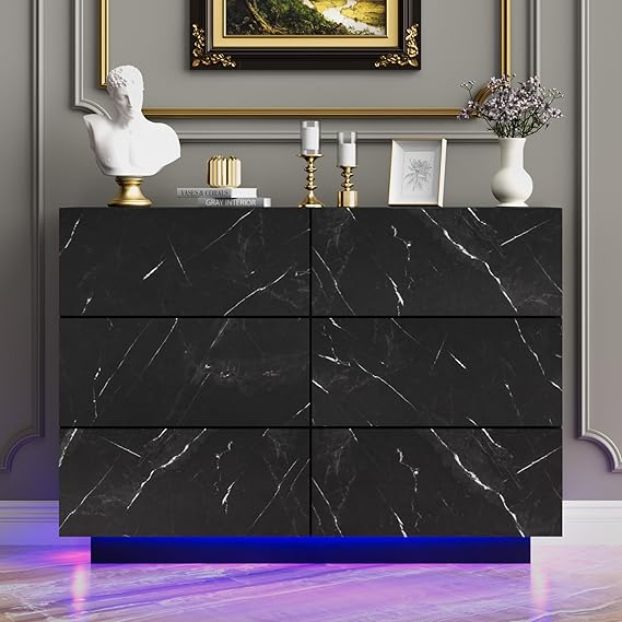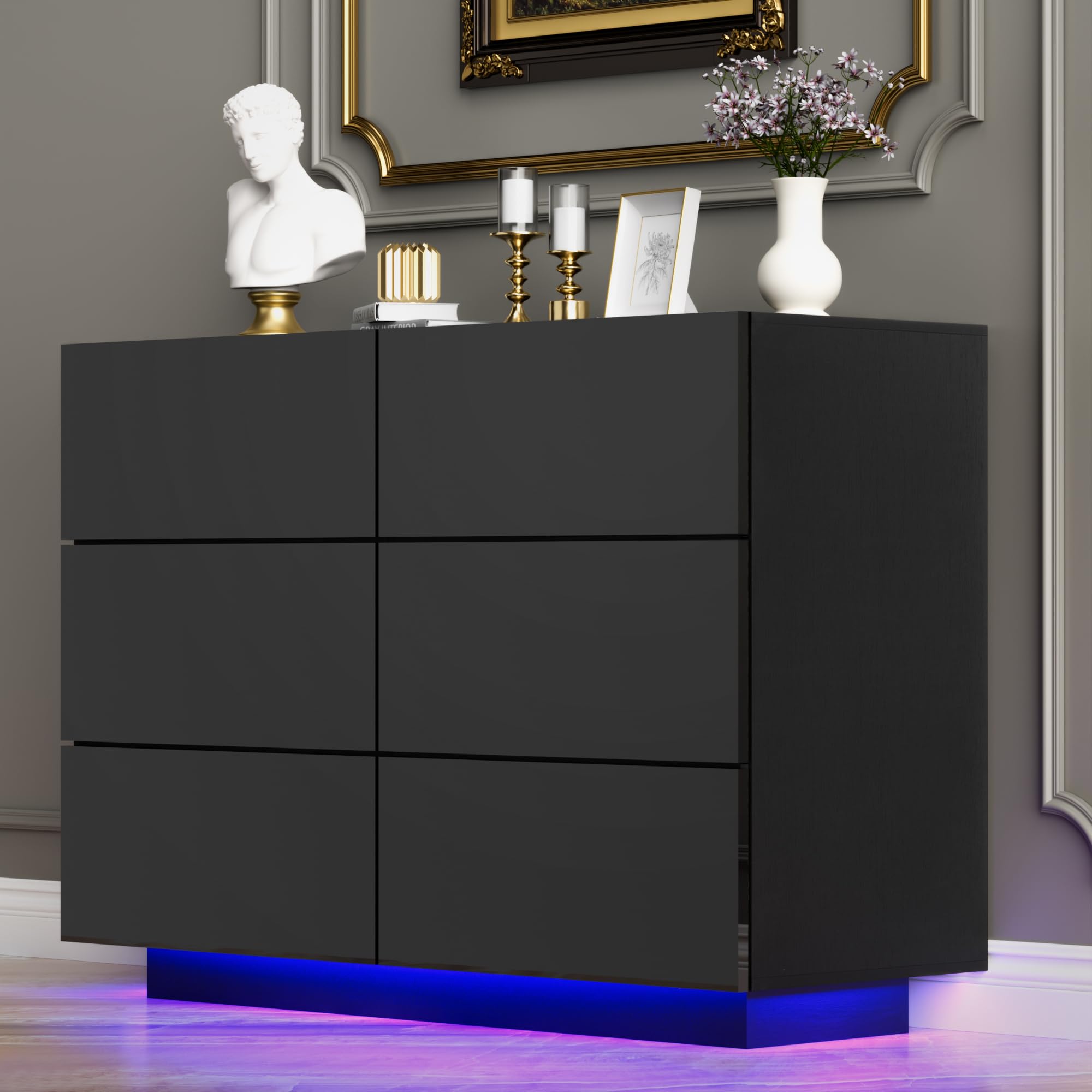 6 Drawer Dresser for Bedroom, Floating Black Dresser Chest of Drawer with LED Light