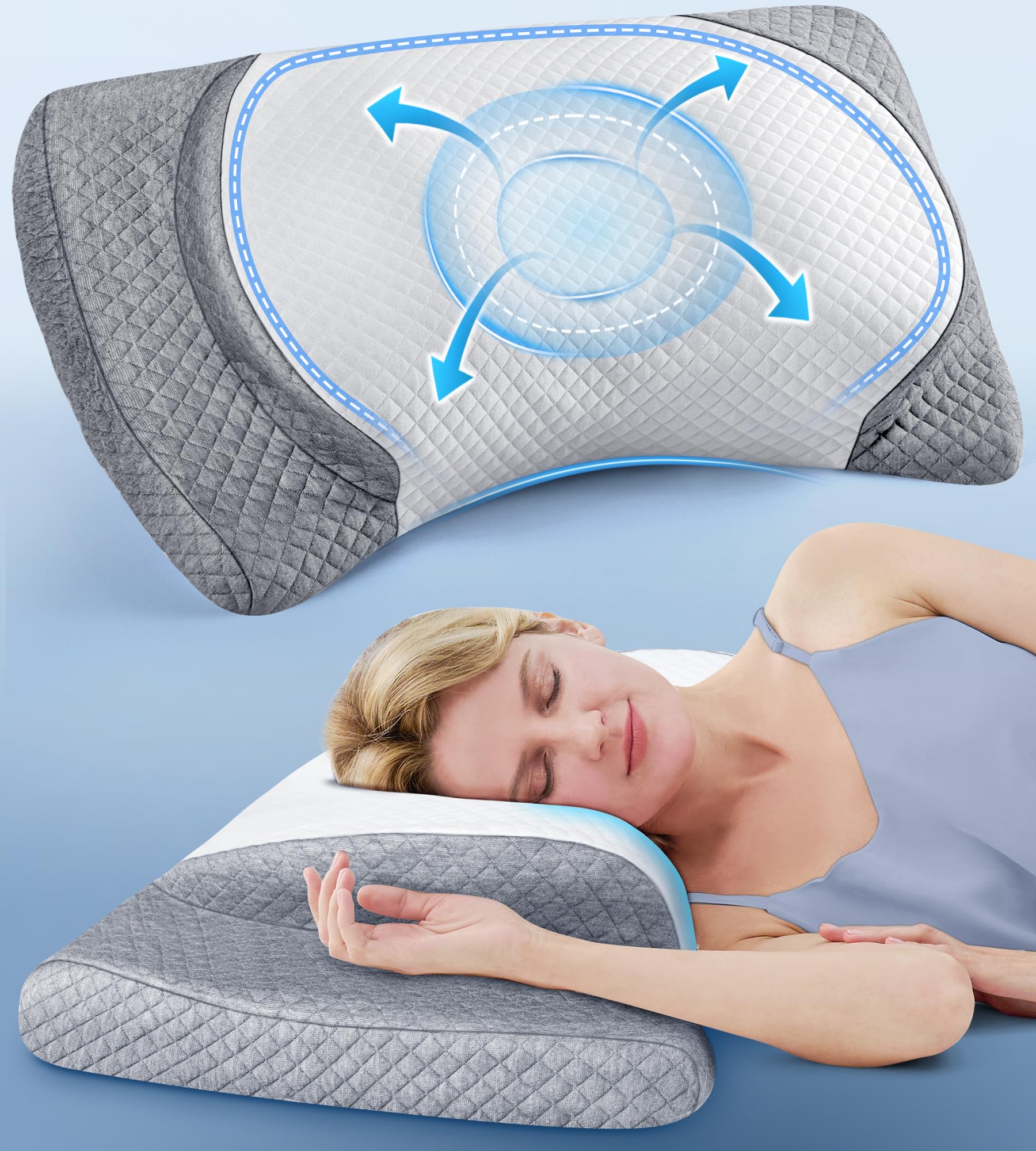 Cervical Neck Pillow for Pain Relief, Adjustable Side Sleeper Pillow