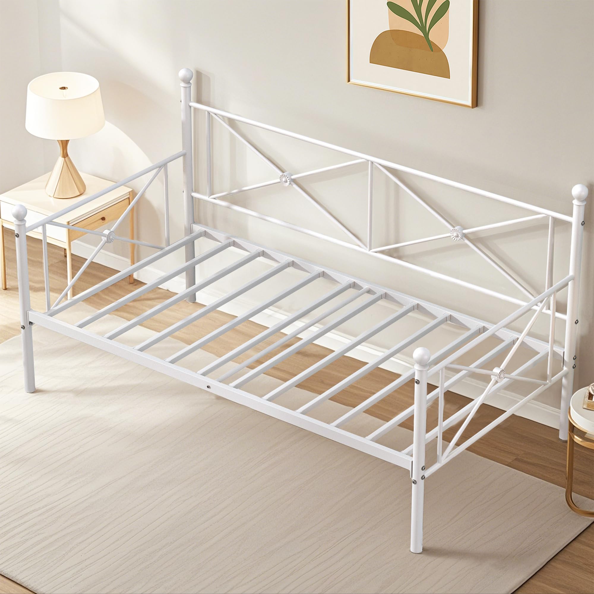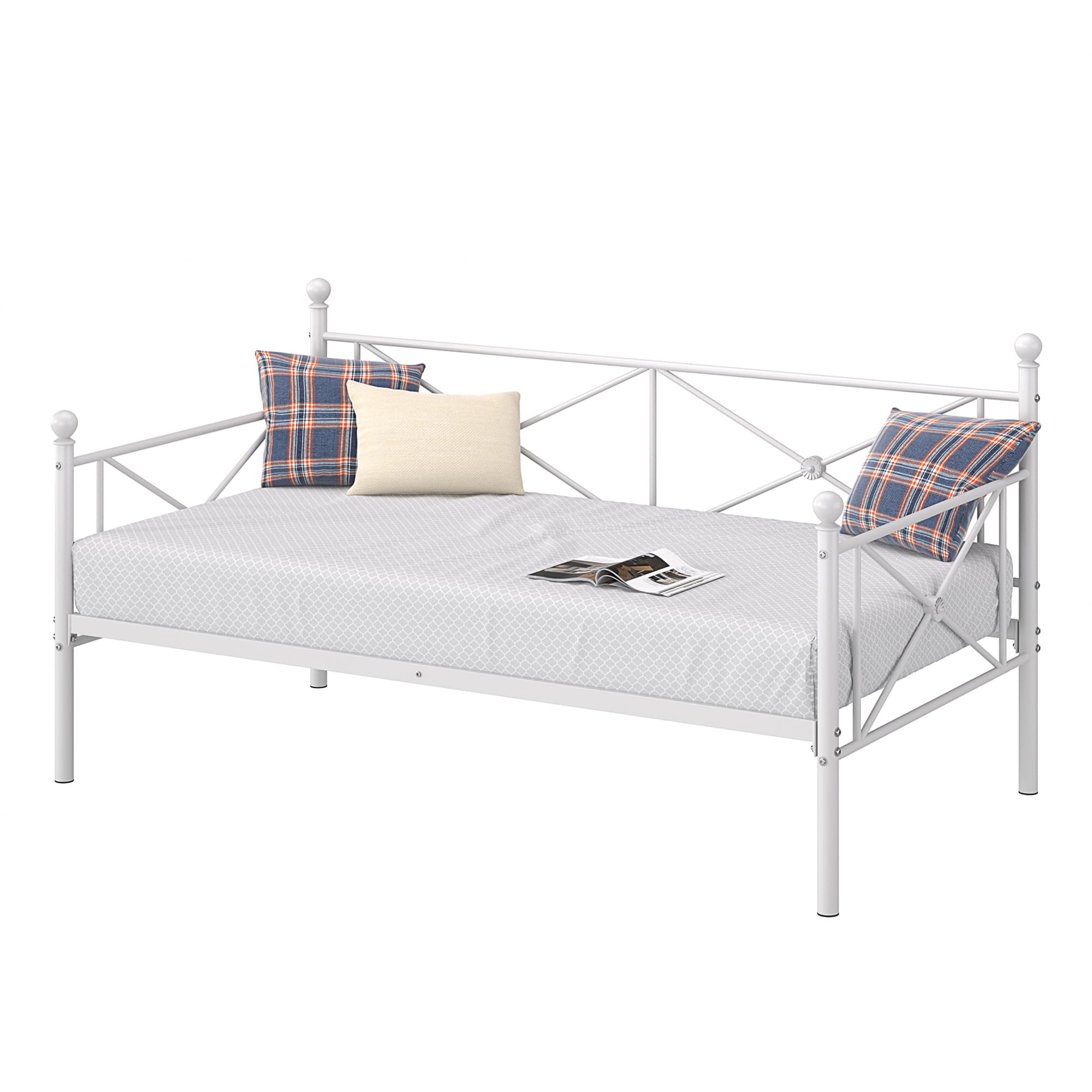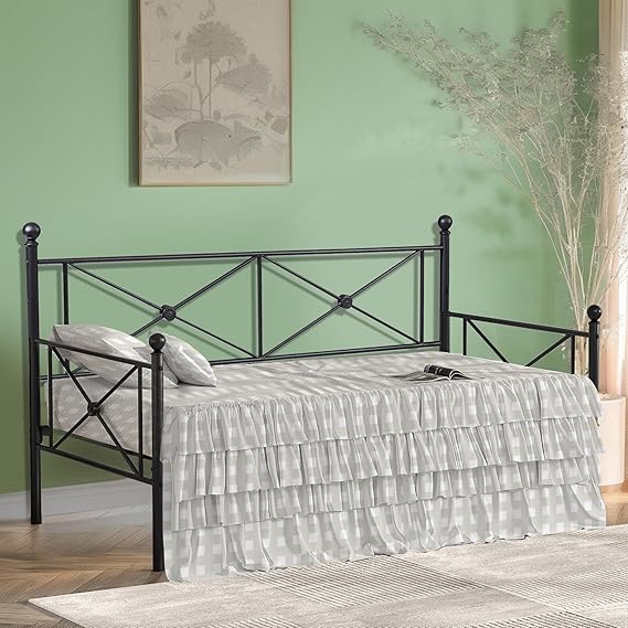 - [Heavy-duty Daybed] - This twin daybed frame structured with heavy-duty metal ensures durability and stability. Powder paint finishes, no quaking & scratching, strong packaged in one box.