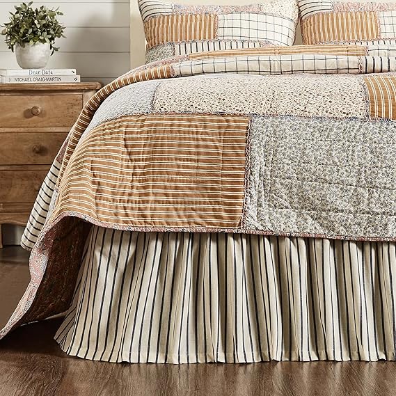 - VINTAGE FARMHOUSE DECOR: Update your farmhouse decor with a soft cotton stripe bedskirt that pays homage to cozy cottage themes. Classic navy and creme add a charming vintage touch to your bedroom with quality construction that will last a lifetime.