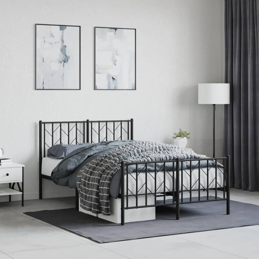 - This double metal bed frame combines strength and style, giving you a reliable solution for your sleep needs. With a sleek black powder-coated finish, it adds a bit of elegance to any bedroom while offering practical features like plenty of under-bed storage to keep things tidy and organized.