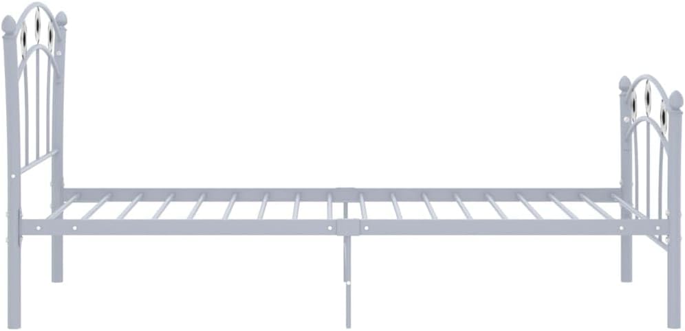 - This grey metal twin bed frame perfectly combines style and function, making any contemporary bedroom shine. Its sleek lines and modern vibe fit right in, giving a polished look while also providing a strong base for restful sleep.