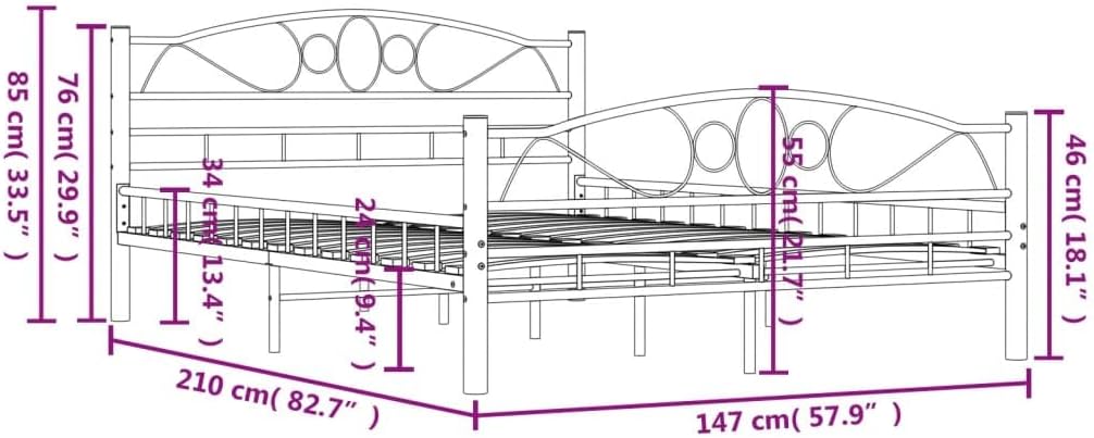 Frame White Metal 55.1x78.7 in Durable Bed Frame