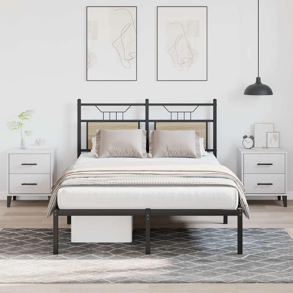 Sonoma Oak Double Bed Frame 120 x 200 cm with Headboard Engineered Wood Indoor