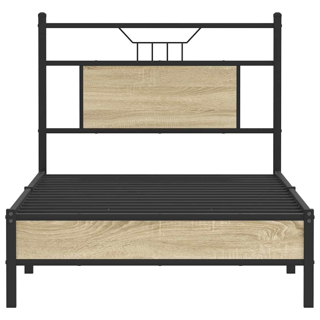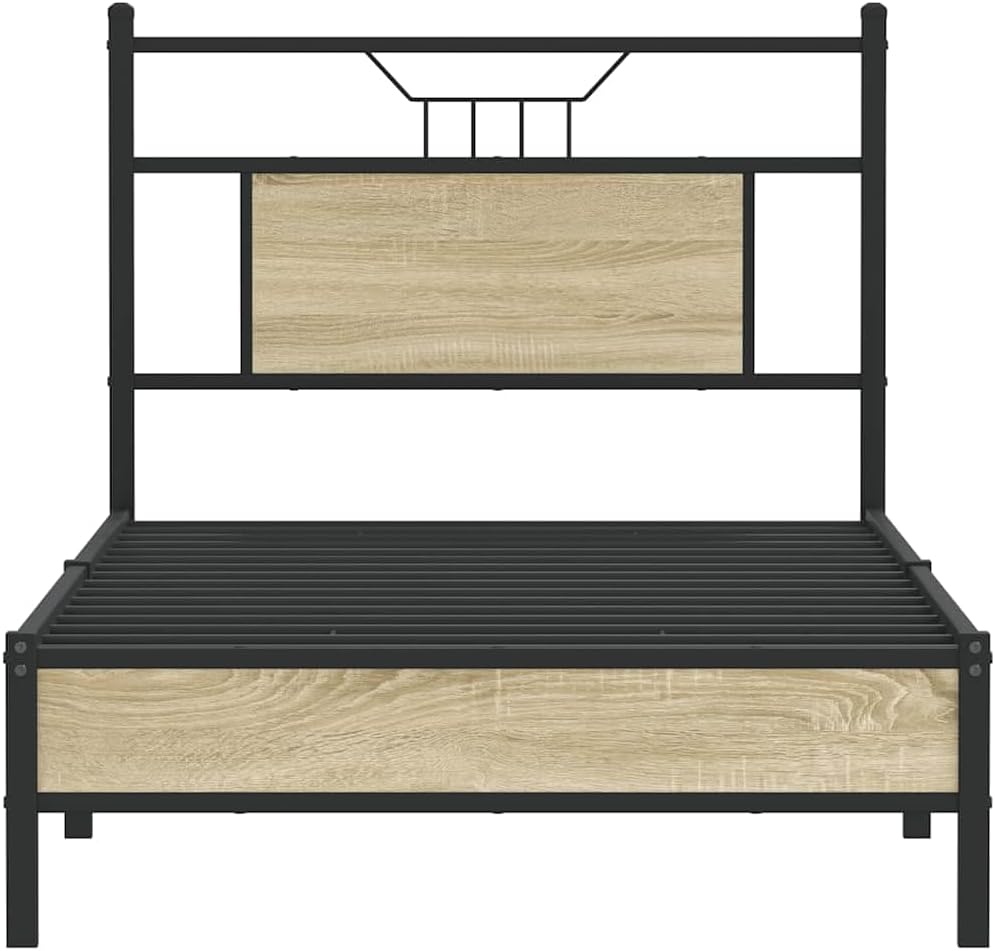 - This Sonoma Oak Twin Bed Frame is a well-designed piece of furniture that brings functionality and modern style together, making it an excellent choice for any bedroom. It's made from engineered wood and steel, offering a stylish focal point while ensuring durability and support for a single occupant.
