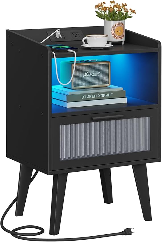 - [Color-Changing LED Lights] Enhance your bedroom ambiance with our bedside table's state-of-the-art color-changing LED lights. Easily switch through a spectrum of colors to match your mood or the room's decor. The adjustable brightness lets you set the perfect lighting for reading, relaxing, or a late-night chat.
