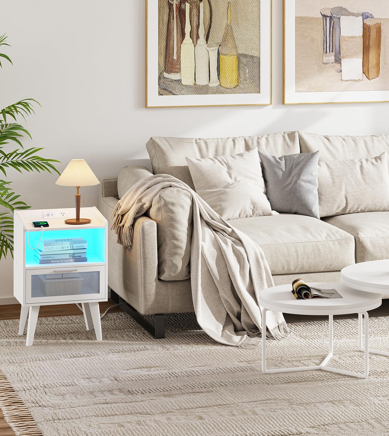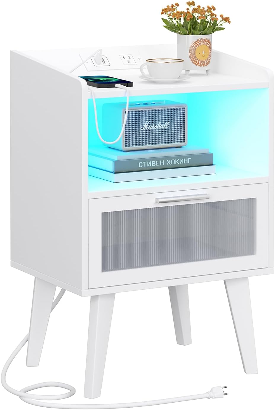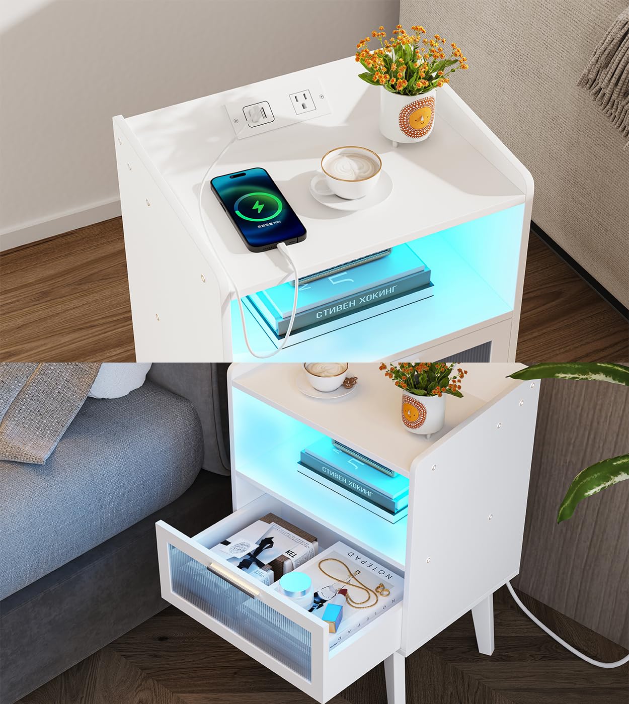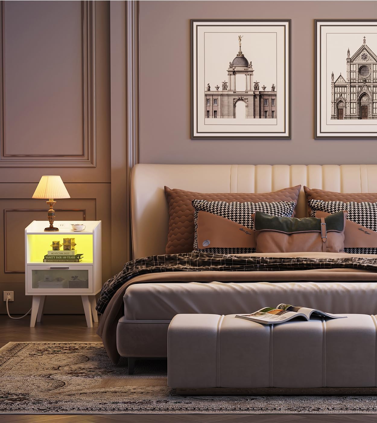 Nightstand with Ajustable LED and Desighed Drawer for Bedroom